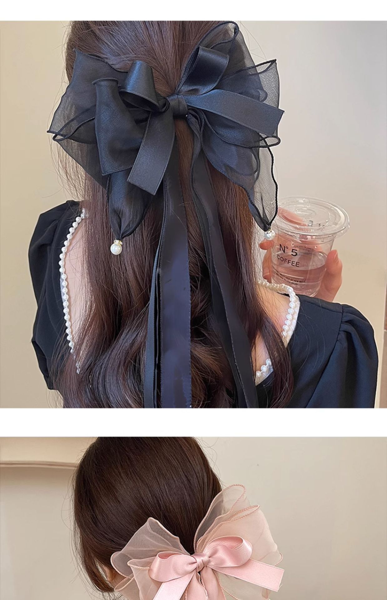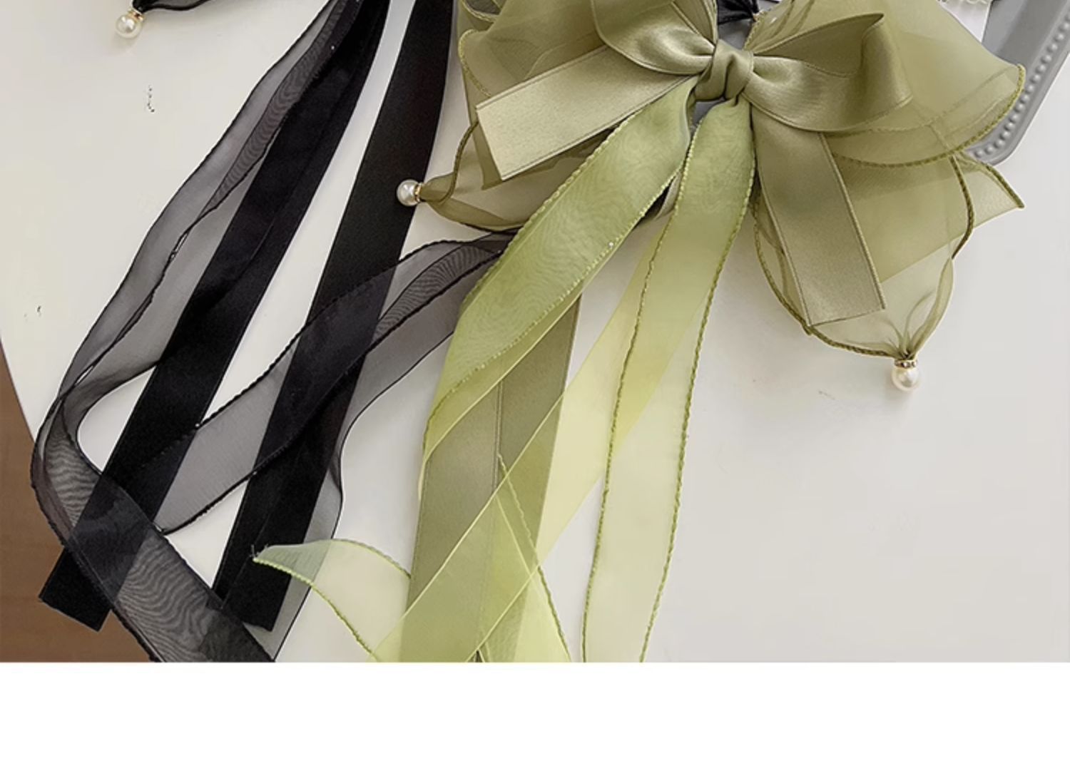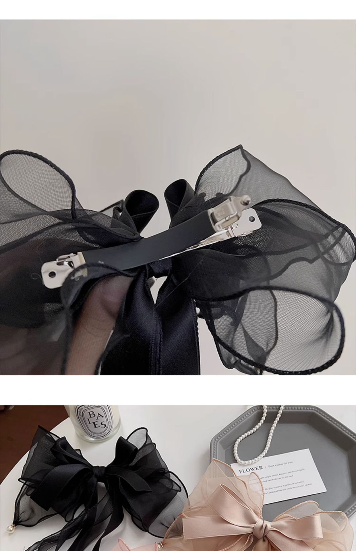 • 1066 블랙 리본 리본 머리핀