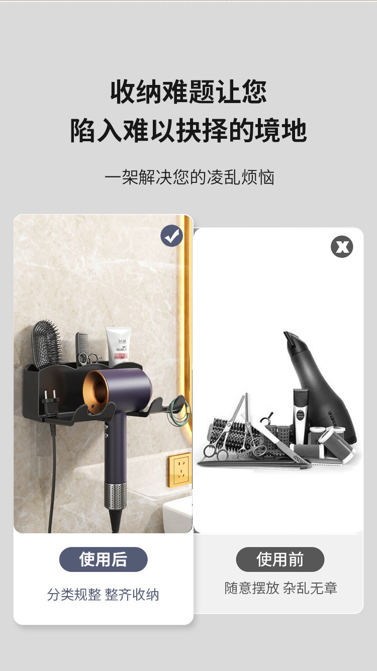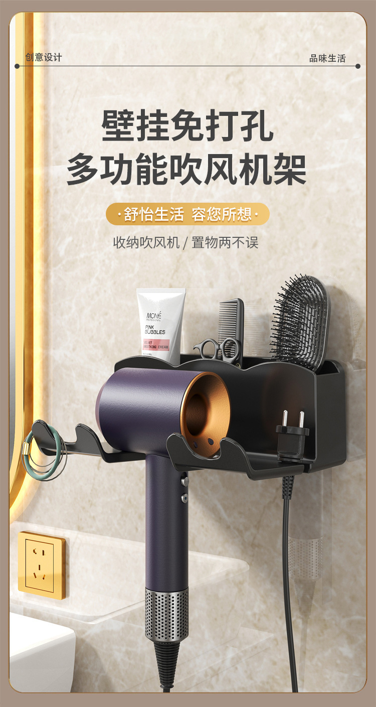 구멍이 없는 욕실 헤어드라이어 홀더 욕실 벽걸이형 헤어드라이어 보관함 헤어드라이어 보관함스토어 가기