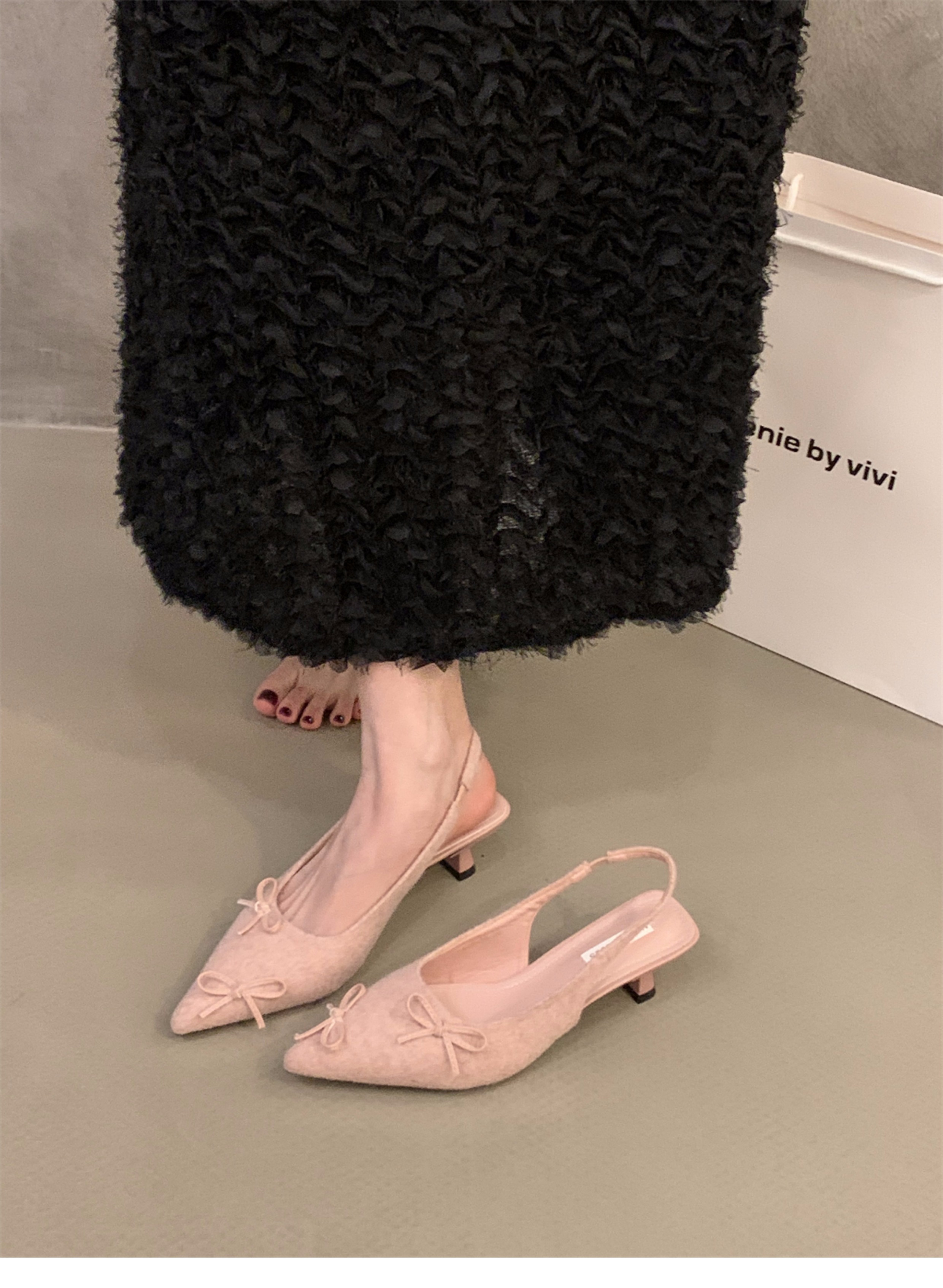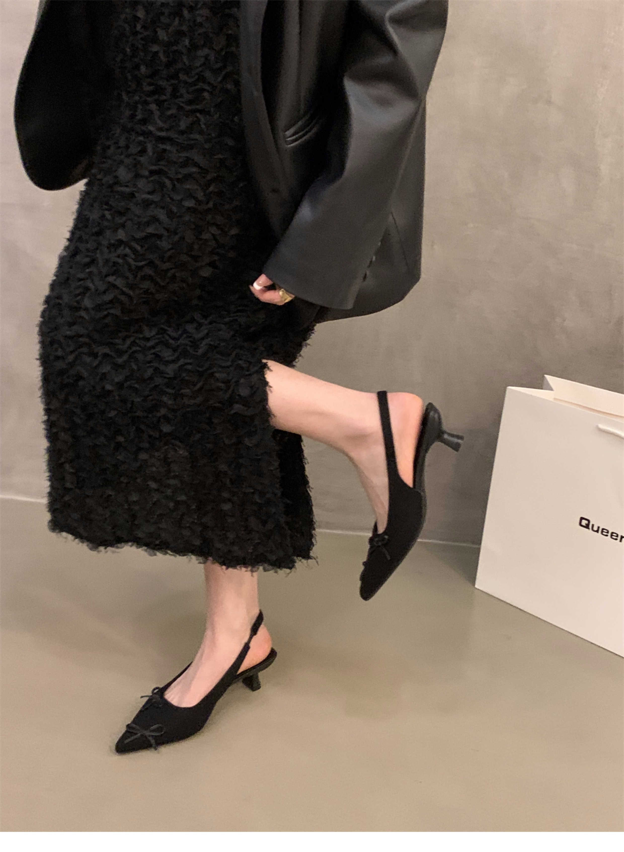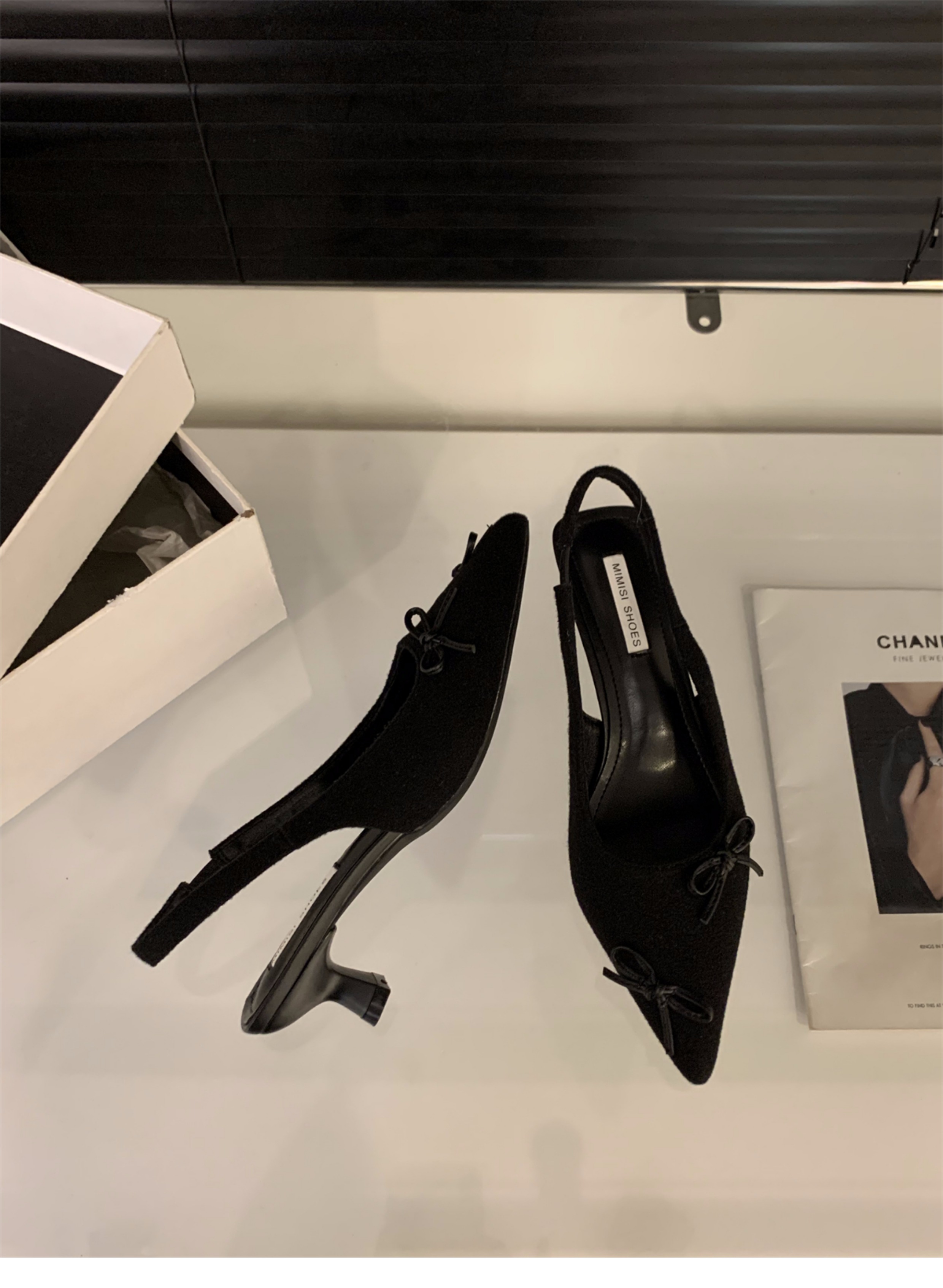 프랑스 작은 하이힐 블랙 스웨이드 발가락 샌들 요정 신발 2025 새로운 봄과 여름 우아한 여성 신발스토어 가기
