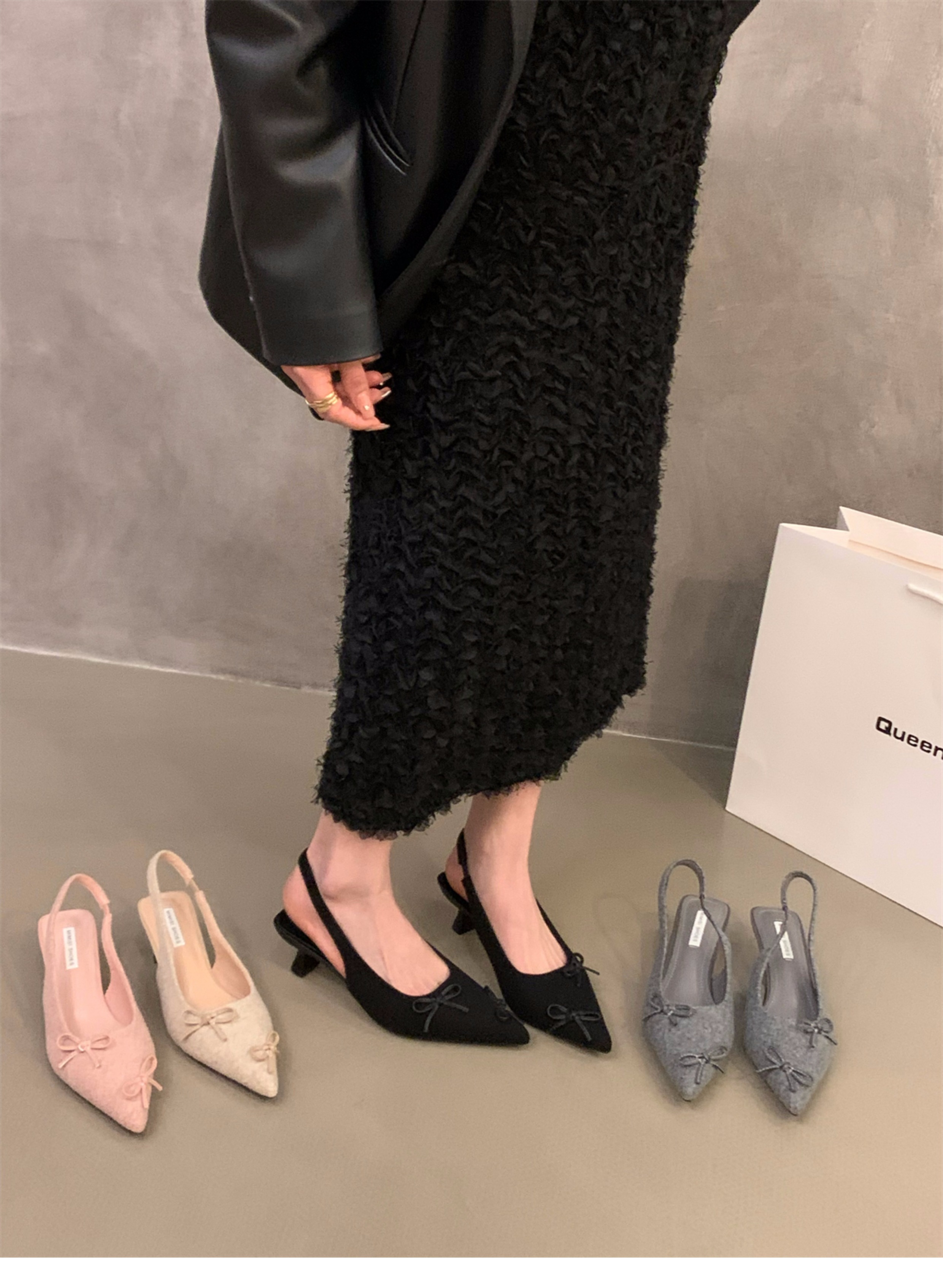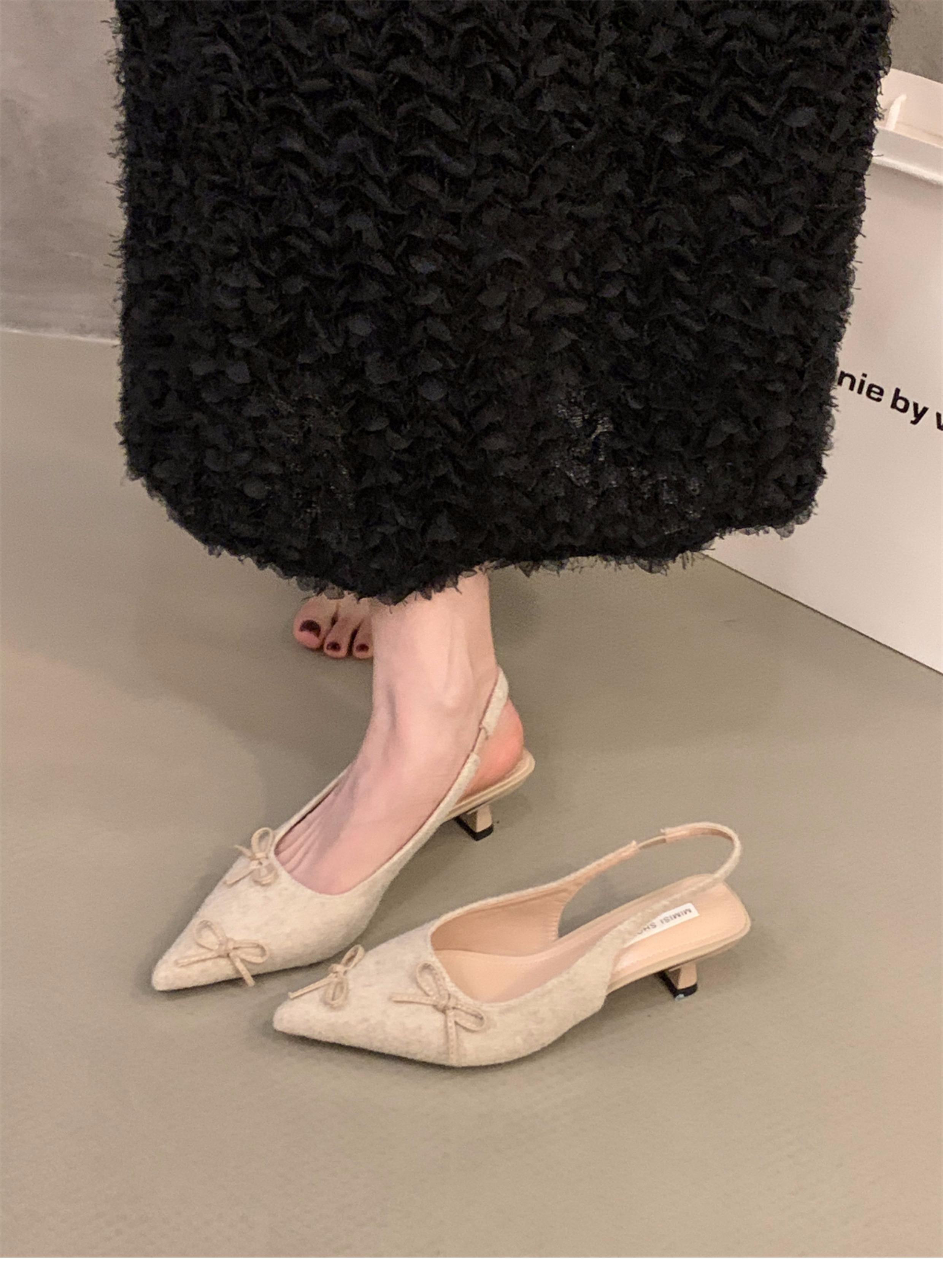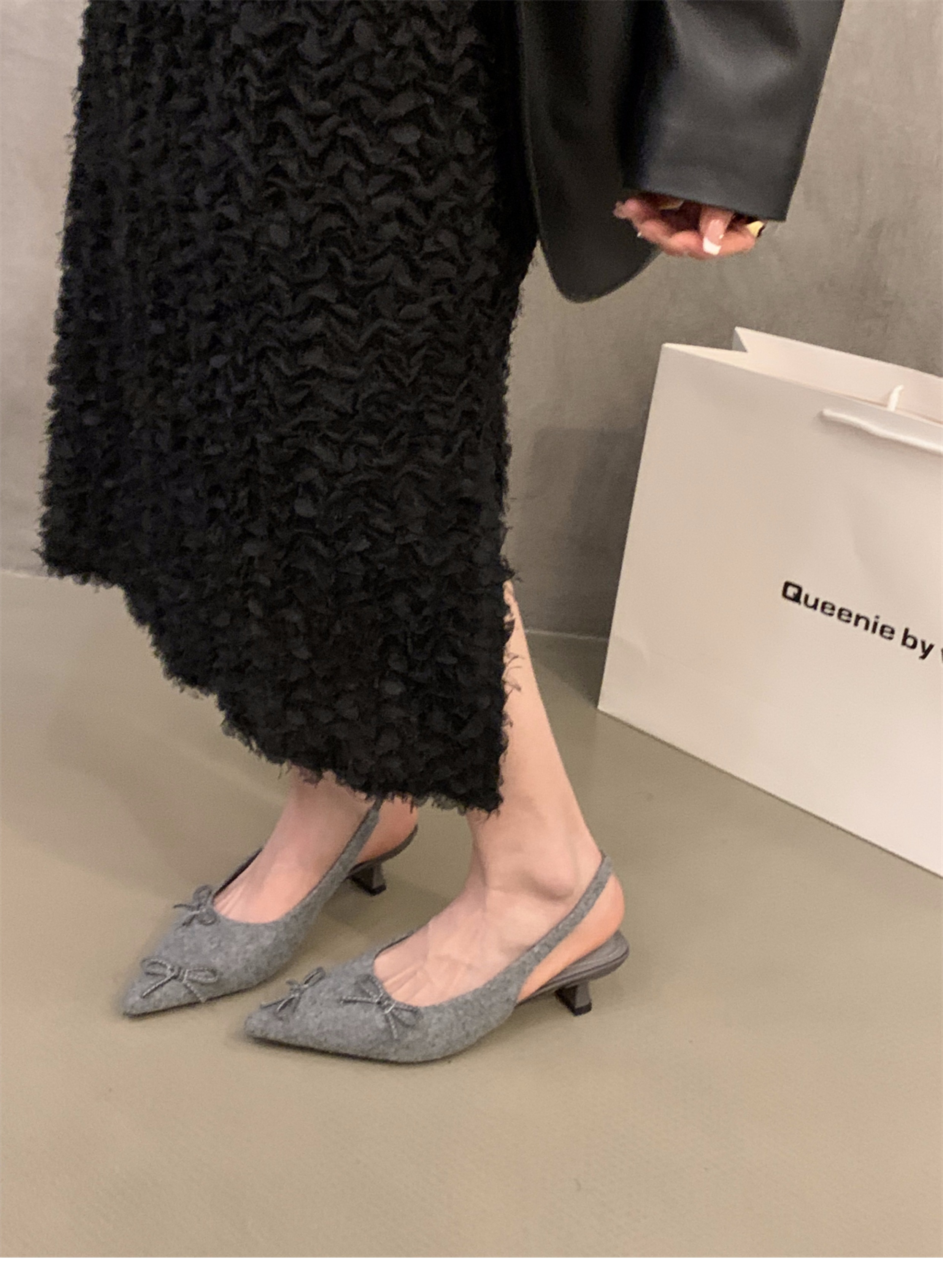 프랑스 작은 하이힐 블랙 스웨이드 발가락 샌들 요정 신발 2025 새로운 봄과 여름 우아한 여성 신발스토어 가기