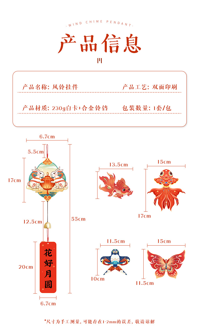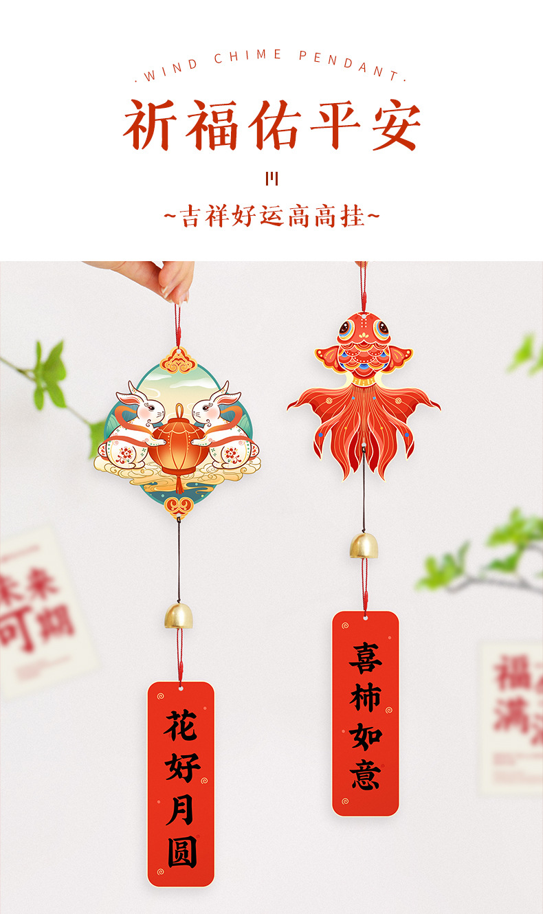새해 집들이 양면 바람 차임 장식품 화려한 장식 창조적 인 문 벨 펜던트 새 가정 장식품 원피스