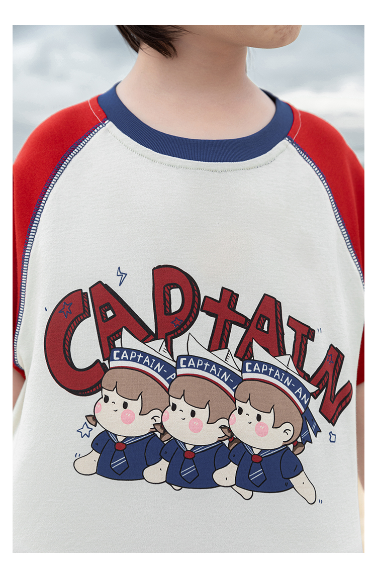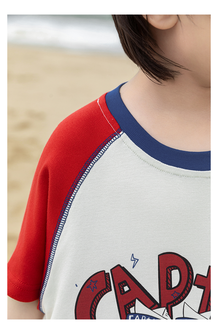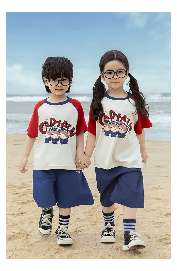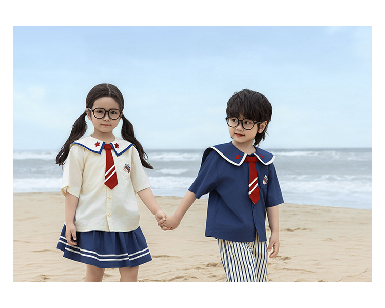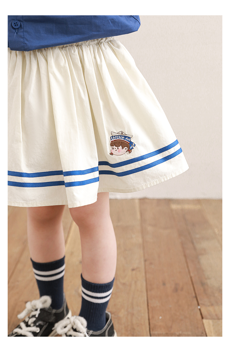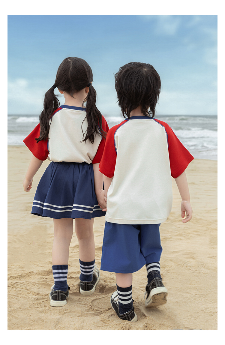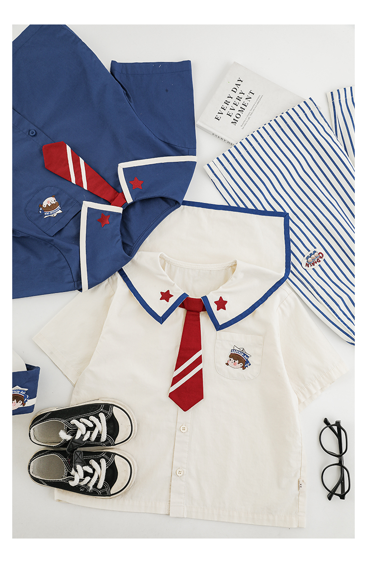 Wulibuyi Girls 네이비 스타일 An'an 시리즈 여름 상큼한 플리츠 스커트 대비 색상 반팔 티셔츠 셔츠 바지