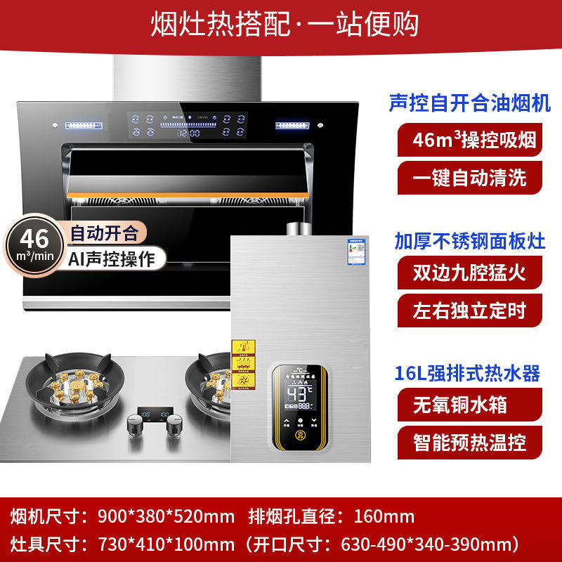 좋은 아내 범위 후드 가스 스토브 패키지 가정용 후드 가스 스토브 온수기 3 피스 세트스토어 가기