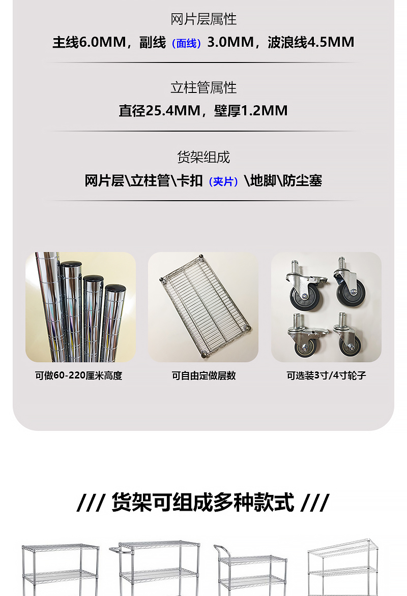 저장 랙 스테인레스 스틸 컬러 창고 선반 저장 선반 주방 보관 랙 발코니 선반 바닥 형 다층 선반