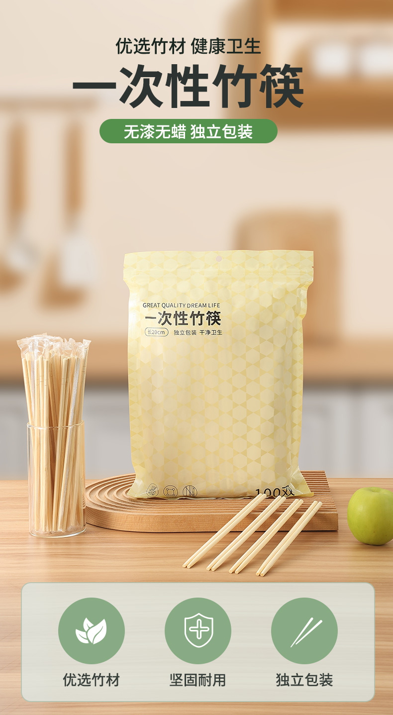 건강하고 편리한 대나무 젓가락 레스토랑 식품 등급 일회용 젓가락 포장 테이크 아웃 천연 도매 식기 독립 포장스토어 가기