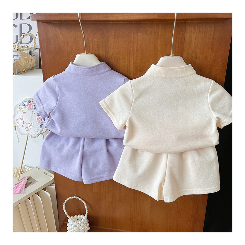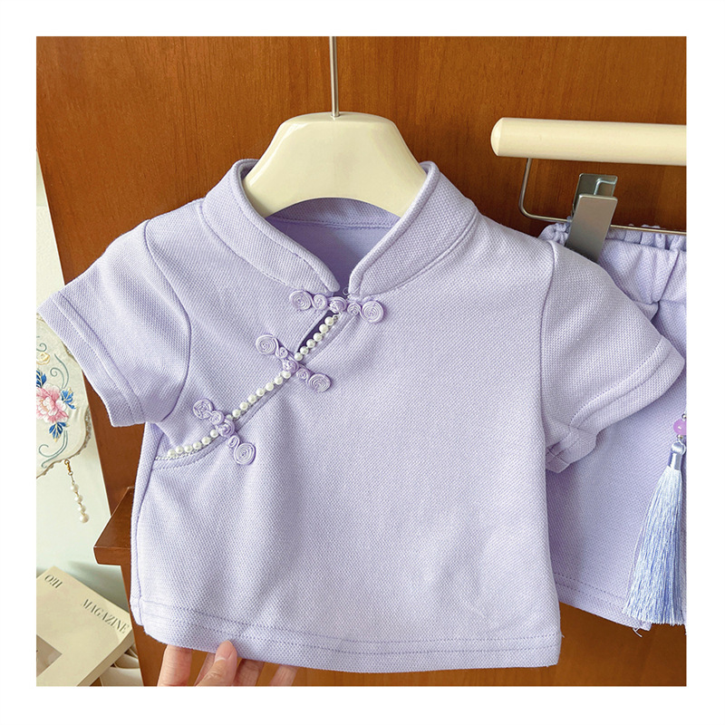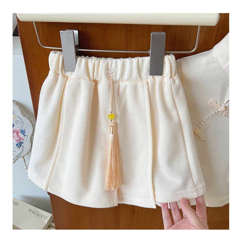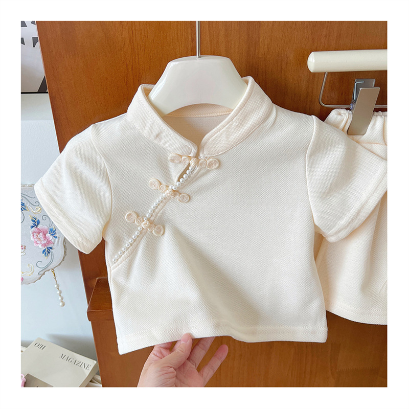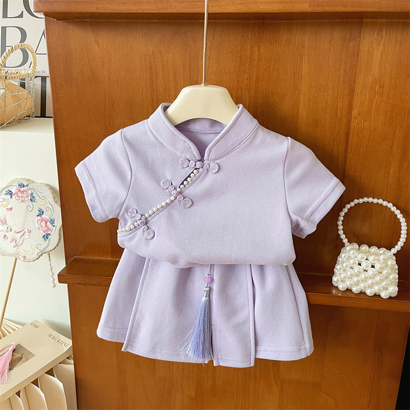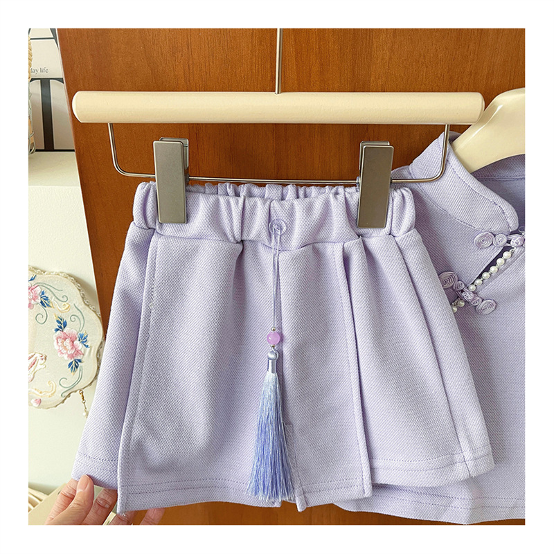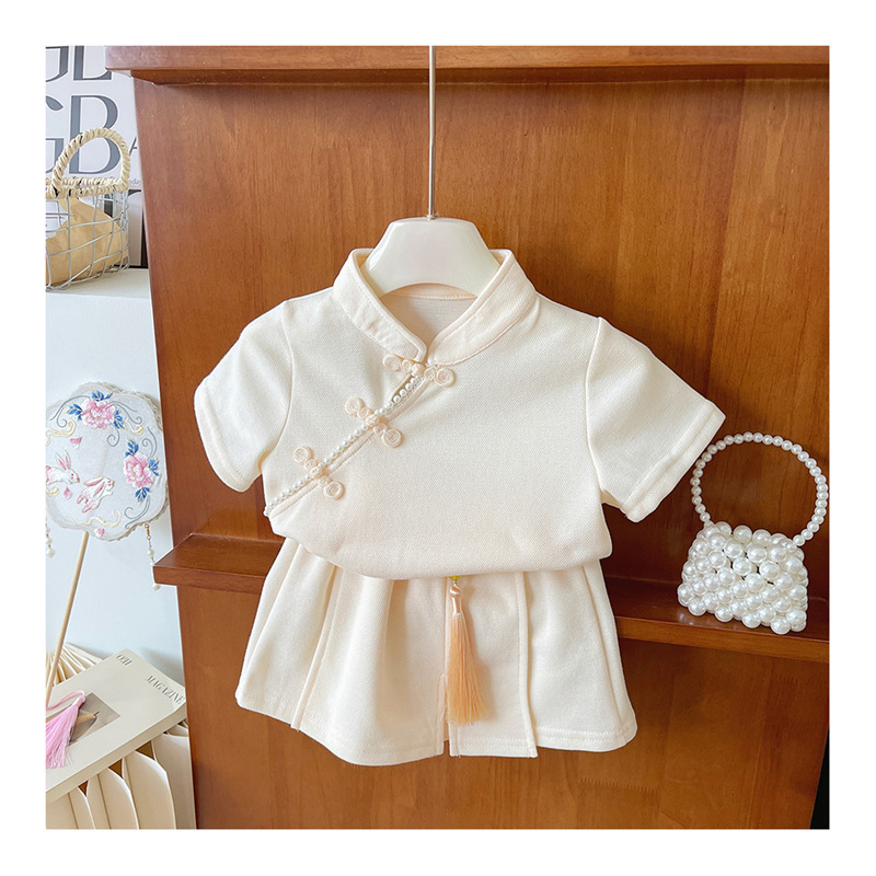 2025 여자 중국 스타일 유행 세트 반팔 여름 새로운 소녀의 국가 스타일 서양식 투피스 트렌디 스커트 바지스토어 가기