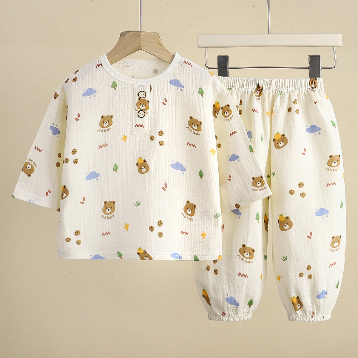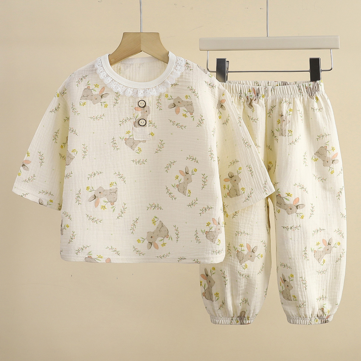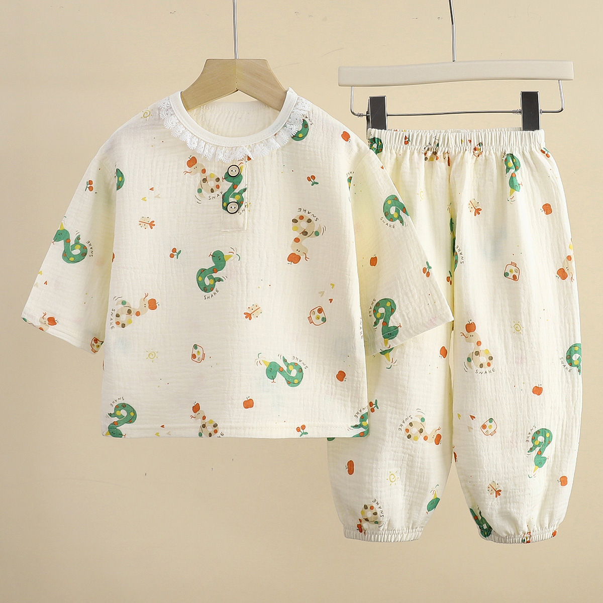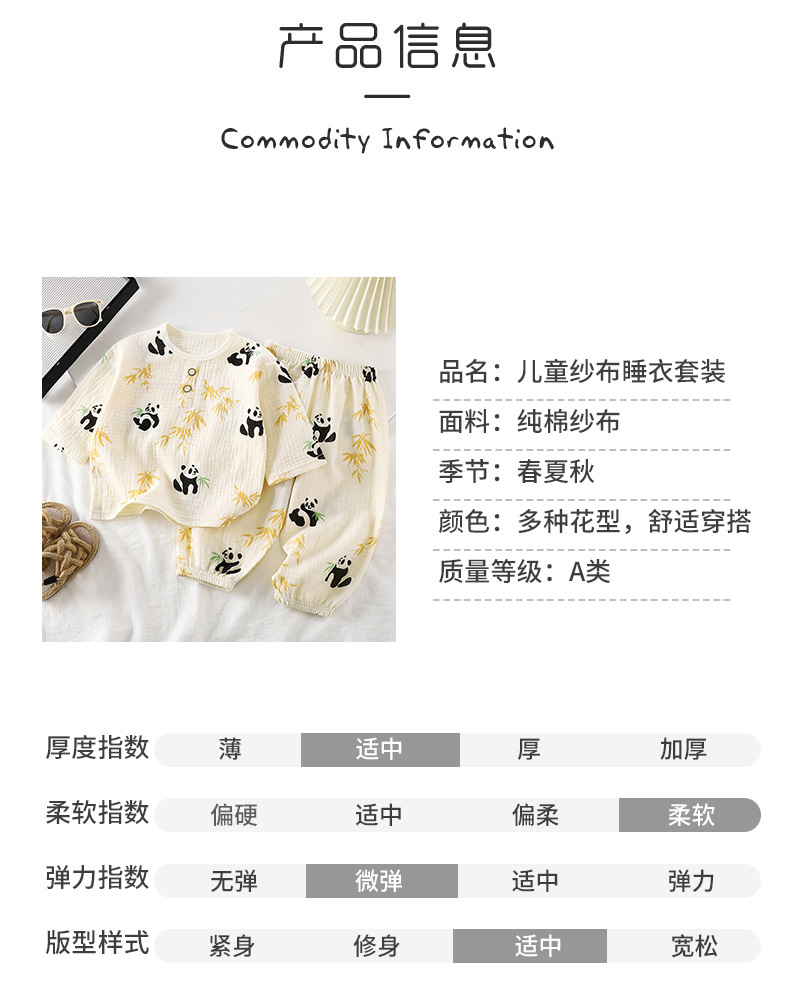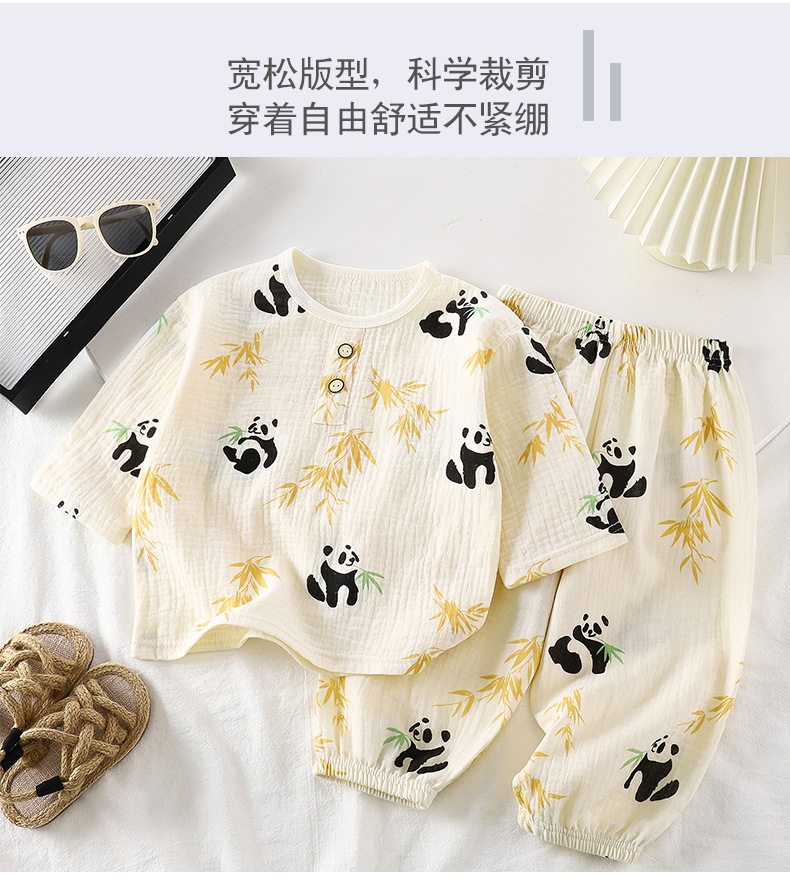 어린이 잠옷 얇은 더블 레이어 코튼 원사 여름 둥근 목 소년 에어컨 옷 레이스 걸스 홈 의류 세트