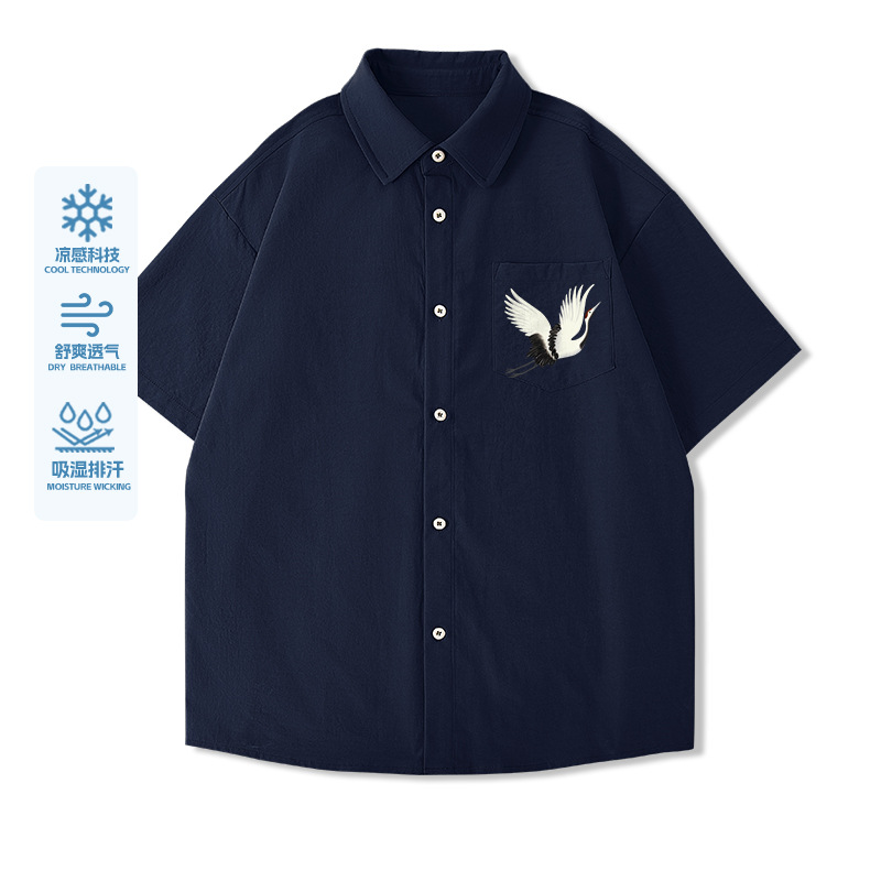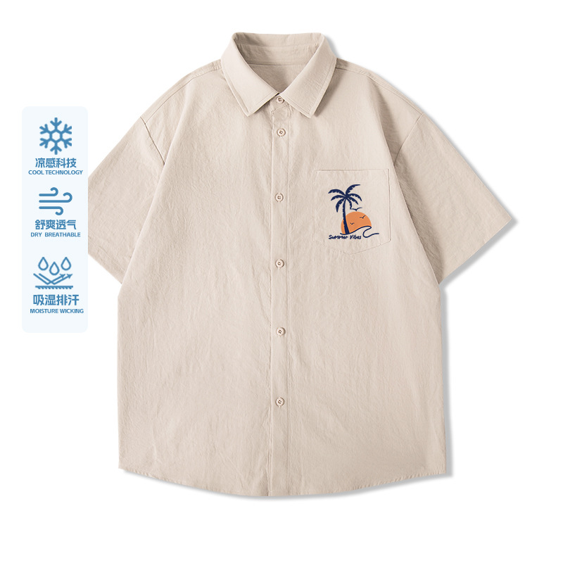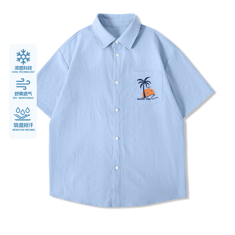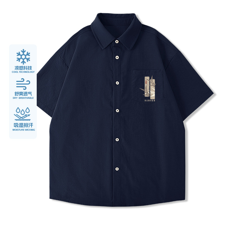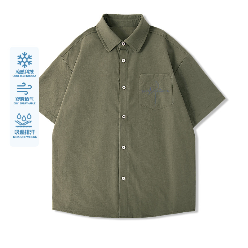 여름용 얇은 아이스 실크 반팔 셔츠, 남성용 시원한 라펠 셔츠, 루즈하고 멋진 캐주얼 셔츠로 착용 가능