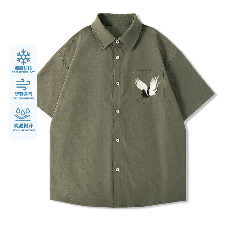 • 밀리터리 그린(잉크 대나무 학 가슴 로고)