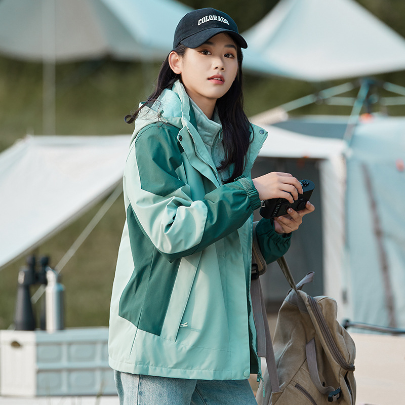 그룹 로고 가을 및 겨울 등산 세트 인쇄 된 여성 자켓 남성 3 대 1 투피스 야외 방풍 방수 툴링스토어 가기