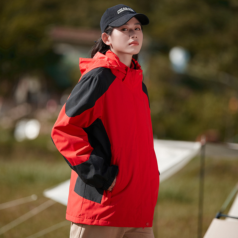 그룹 로고 가을 및 겨울 등산 세트 인쇄 된 여성 자켓 남성 3 대 1 투피스 야외 방풍 방수 툴링
