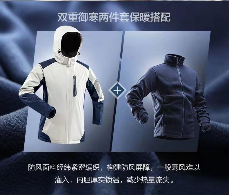 가을과 겨울 두꺼운 여성의 3 대 1 방풍 인쇄 코트 작업 옷 재킷 남성 기모 야외 툴링 세트스토어 가기