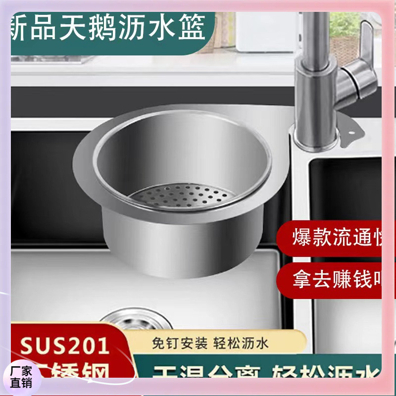 ✅ 주방 싱크대 백조 배수 바구니 스테인레스 스틸 교수형 배수 랙 건식 및 습식 분리 후크 쓰레기 필터링스토어 가기