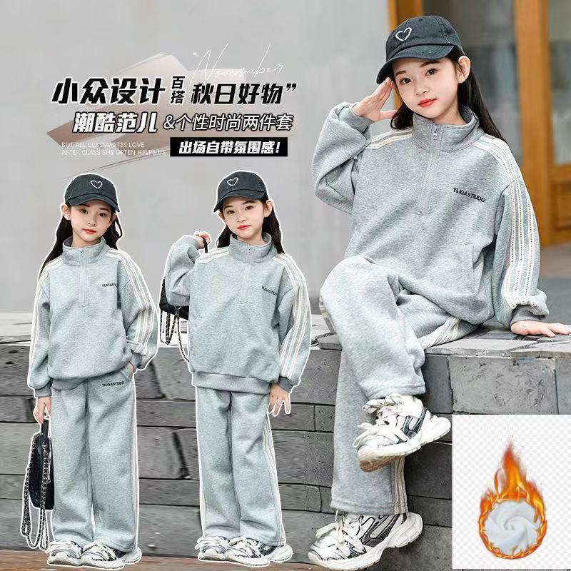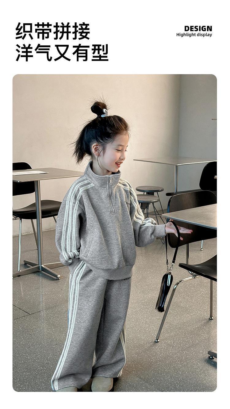 소녀 스포츠 세트 가을 의류 2025 새로운 유행 어린이 의류 서양식 어린이 봄과 가을 땀 바지 2 조각 유행스토어 가기