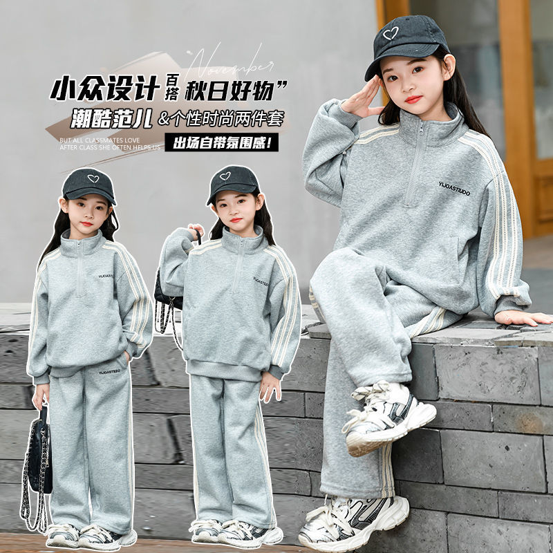 소녀 스포츠 세트 가을 의류 2025 새로운 유행 어린이 의류 서양식 어린이 봄과 가을 땀 바지 2 조각 유행
