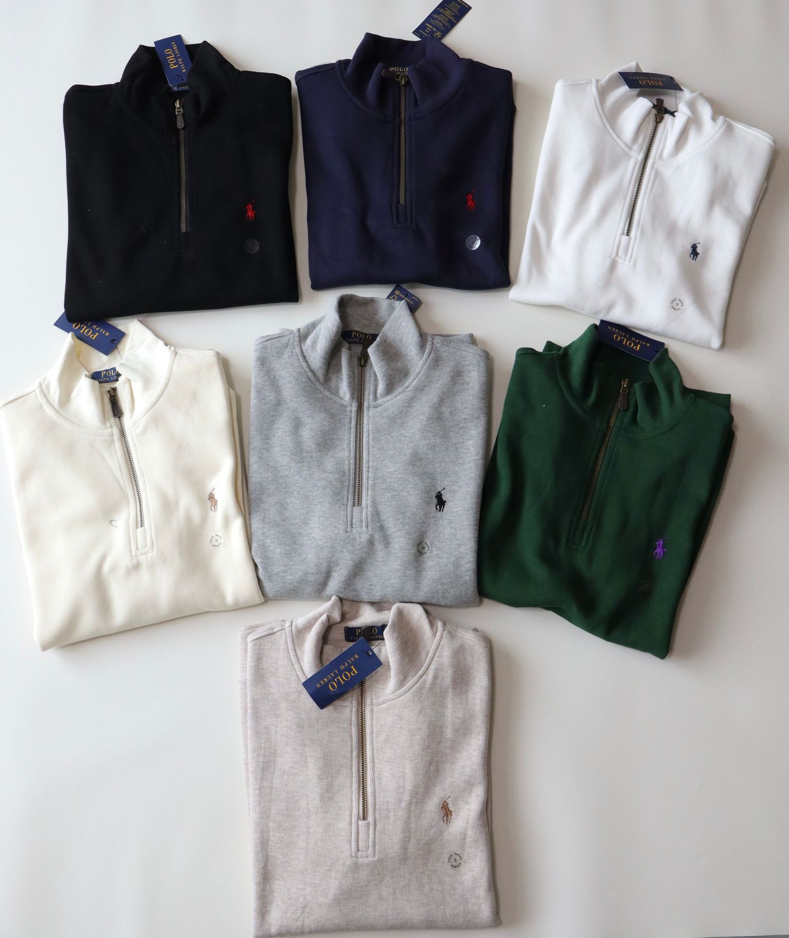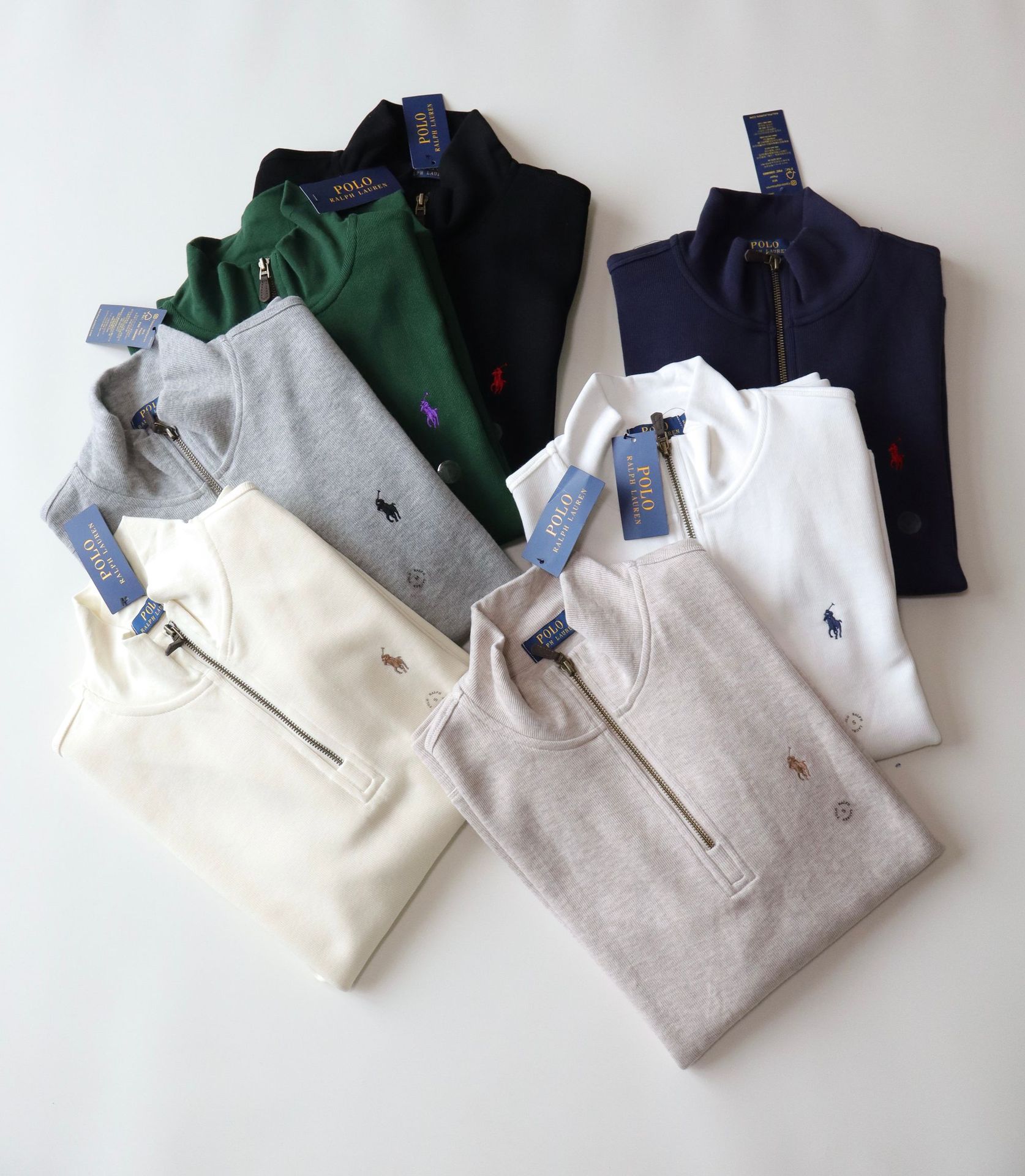 세븐컬러즈(Seven Colors)는 크로스보더 공급을 통해 RL(Seven Colors)의 말표 자수 반지퍼 하이넥 긴팔 니트 스웨트셔츠를 남녀공용으로 공급합니다.