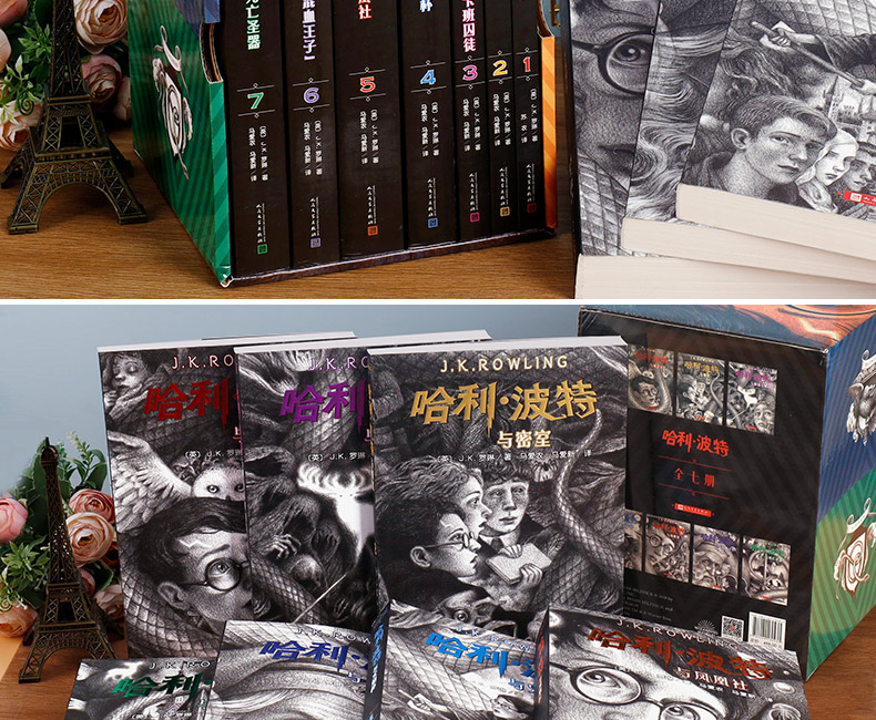 해리 포터 북 8 개의 오리지널 정품 중국어 완전한 세트 마법사의 돌과 죽음의 성물 비밀 회의소 Azka