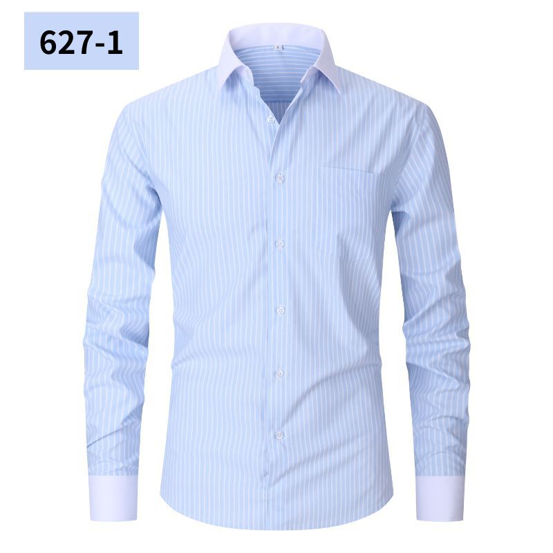 아마존 폭발 레트로 캐주얼 느슨한 줄무늬 플러스 사이즈 파란색과 흰색 남성 줄무늬 긴 소매 셔츠 남성 국경 스타일