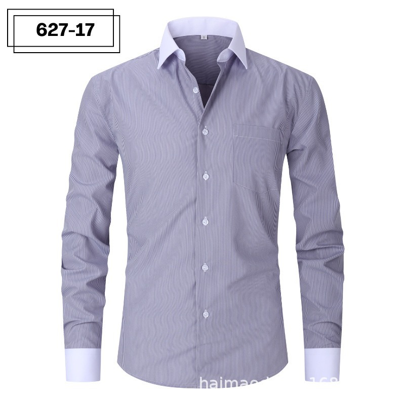 아마존 폭발 레트로 캐주얼 느슨한 줄무늬 플러스 사이즈 파란색과 흰색 남성 줄무늬 긴 소매 셔츠 남성 국경 스타일스토어 가기
