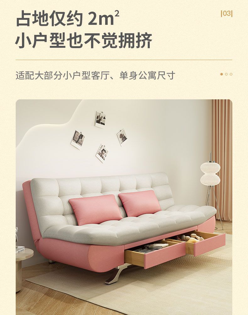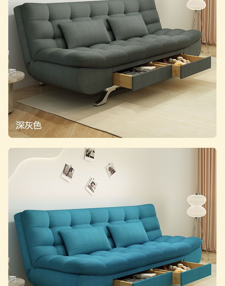 다기능 소파 침대 작은 아파트 접이식 워시없는 기술 천 듀얼-서랍이있는 1.9 m 소파 침대