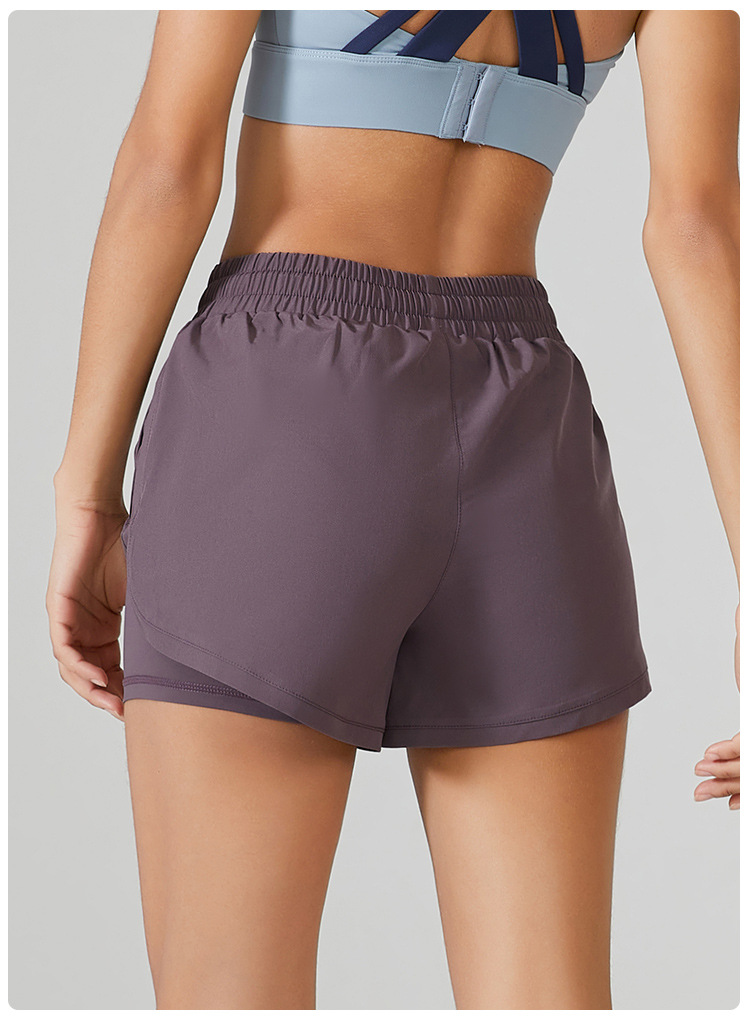 대외 국경 유럽과 미국의 하이 웨이스트 드로스트링 스포츠 반바지 여성 슬리밍 피트니스 바지 러닝 노출 방지 가짜 투피스 요가 반바지
