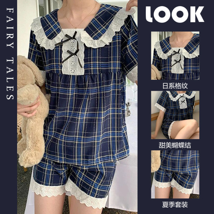 2025 년 여름 새로운 꽃 반팔 잠옷 여성 인터넷 인기 스타일 소녀의 달콤한 홈 의류 반바지 세트스토어 가기