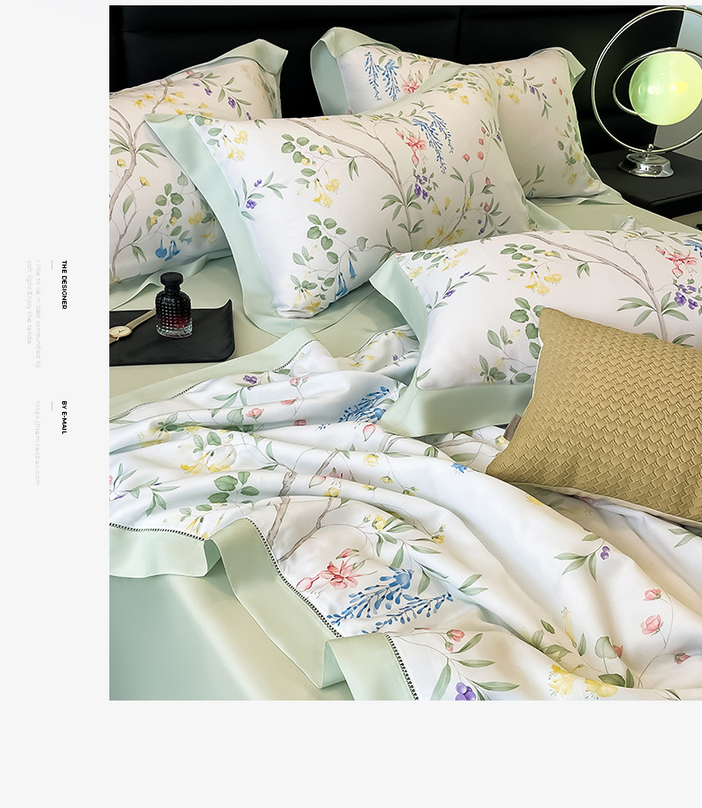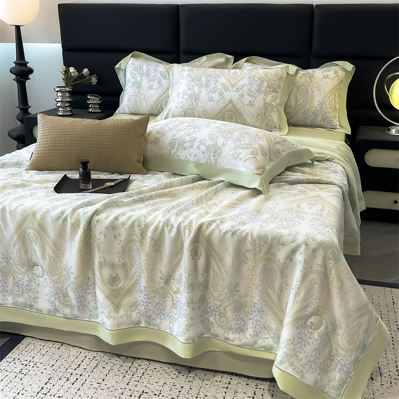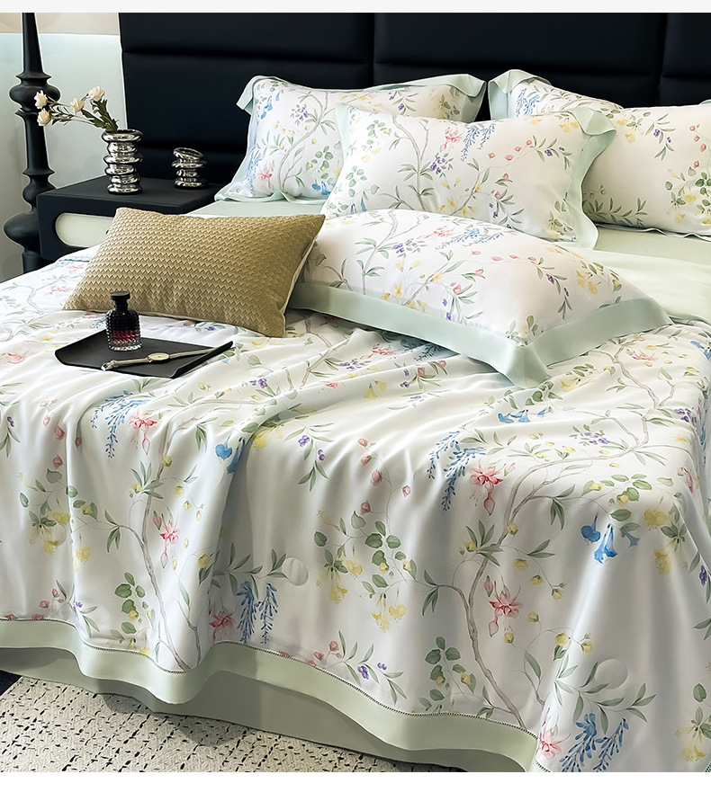 Lyocell Tencel 여름 시원한 이불 4 종 세트 기계 세탁기 냉장 이불 쿨 아이스 실크 여름 얇은 이불 인쇄