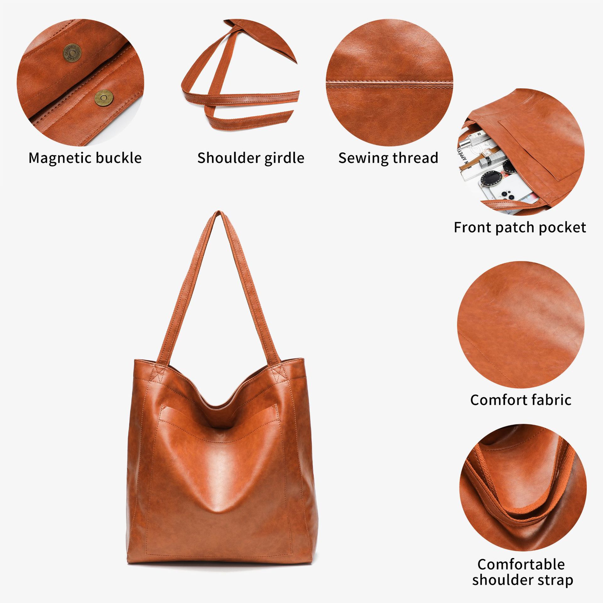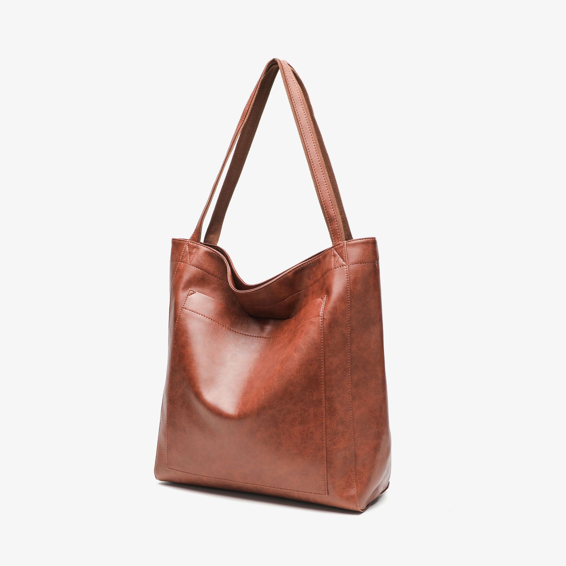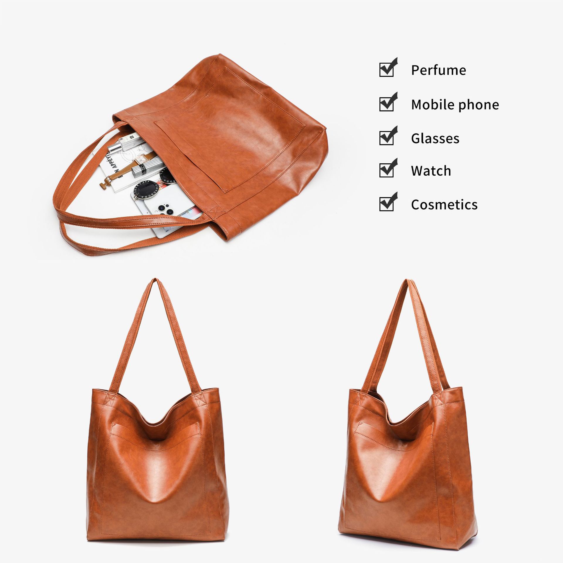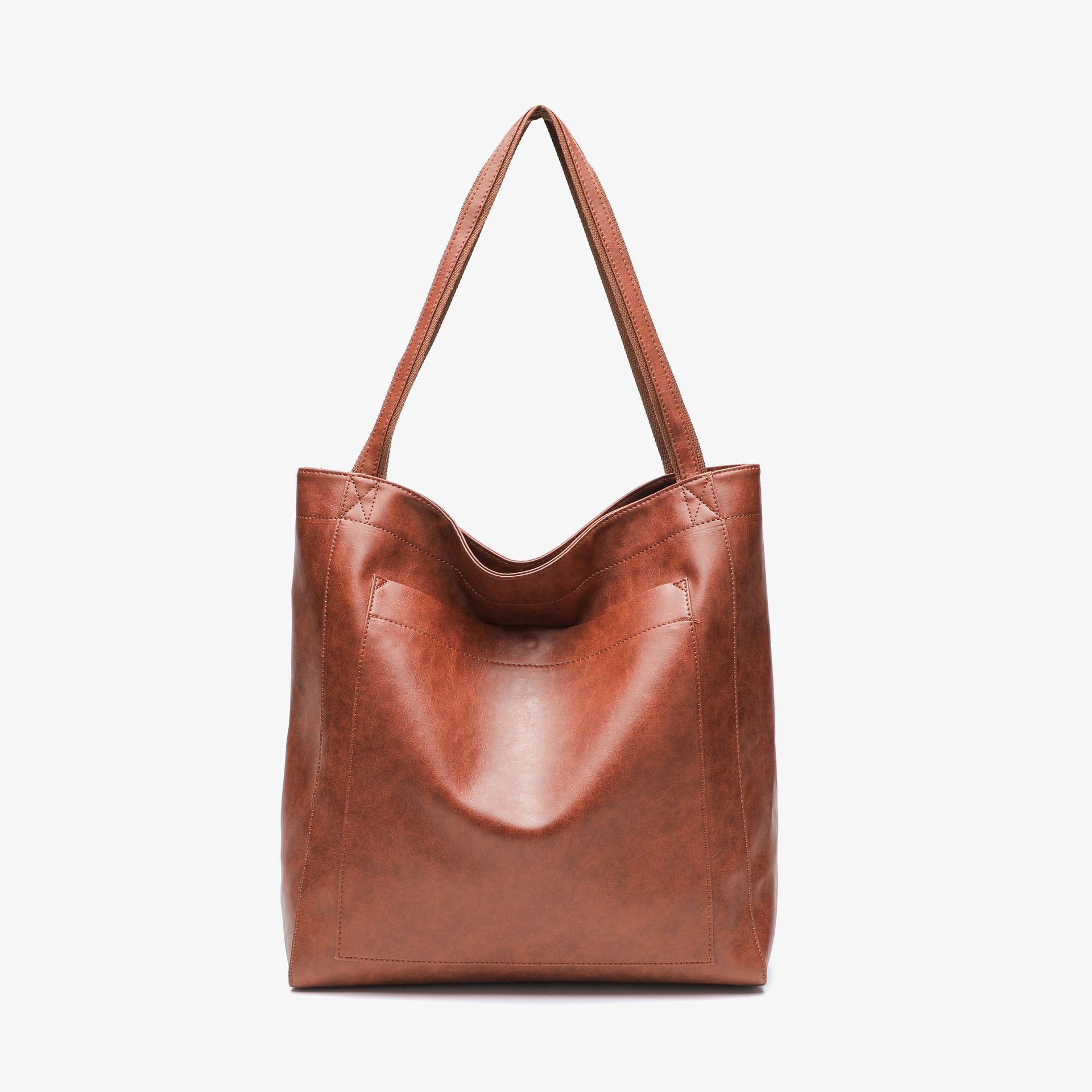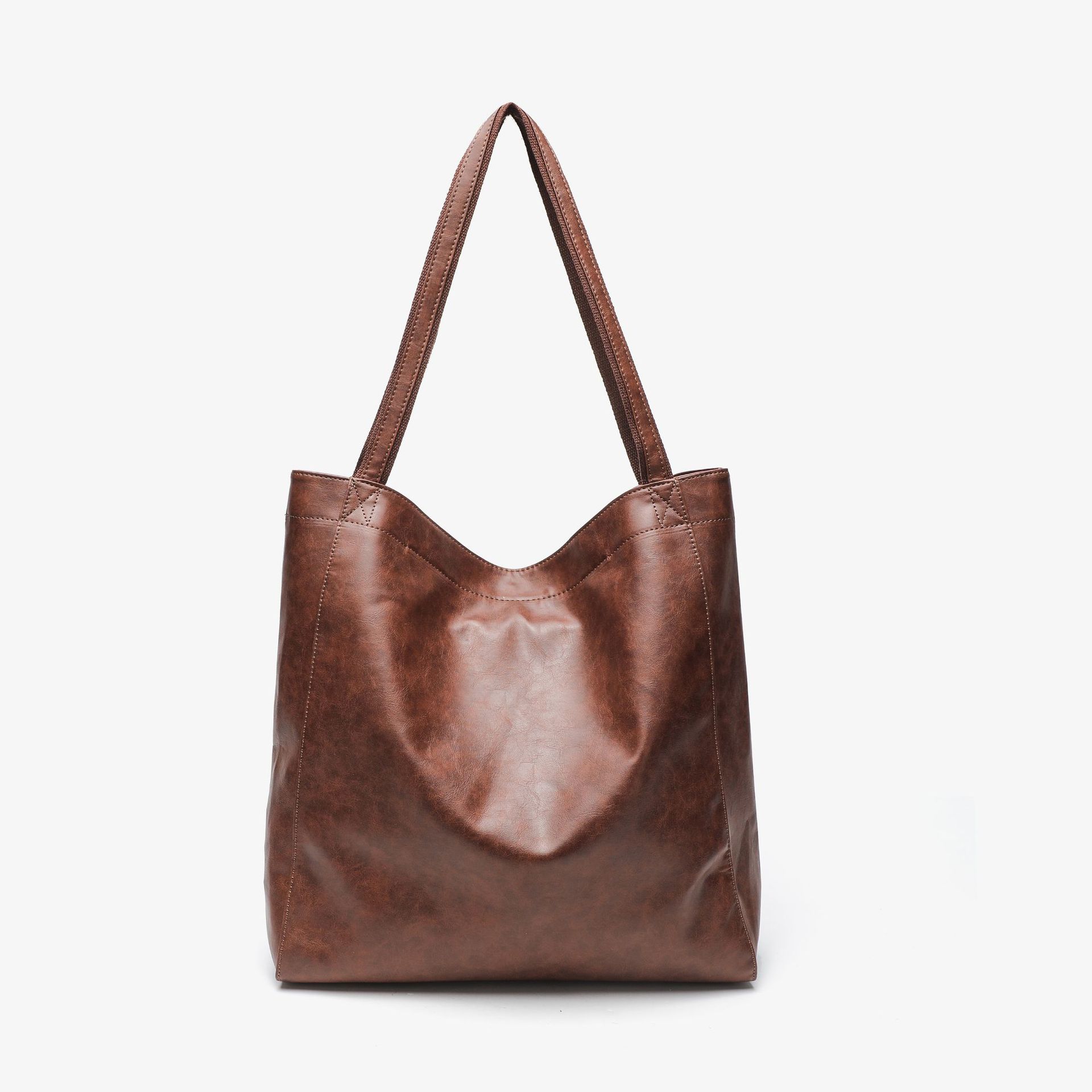 아마존 독립 역 국경 간 폭발 레트로 오일 왁스 가죽 여성을위한 간단한 올 매치 패션 핸드백 통근 토트 백