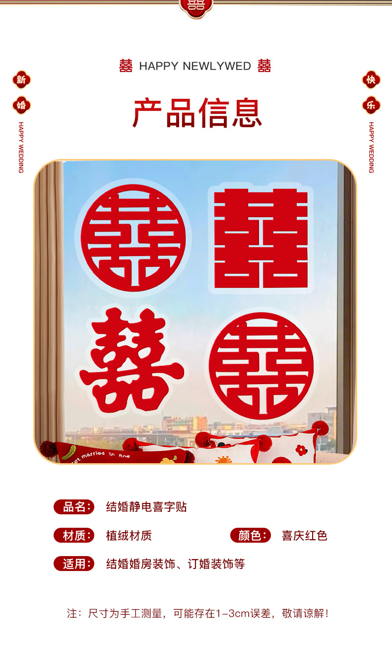 웨딩 스티커 웨딩 클로킹 정전기 스티커 웨딩 룸 거실 유리 창 유형 스티커 약혼 장식