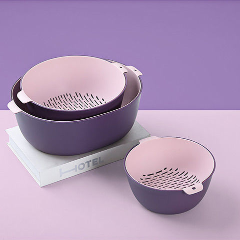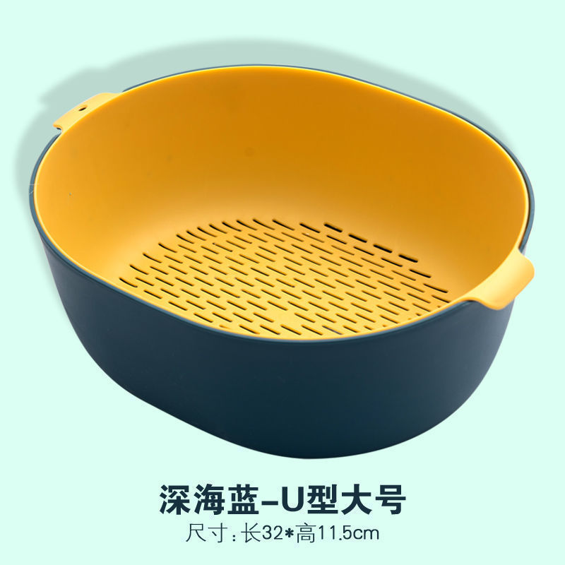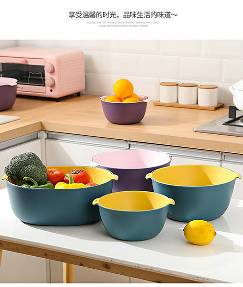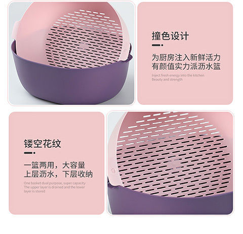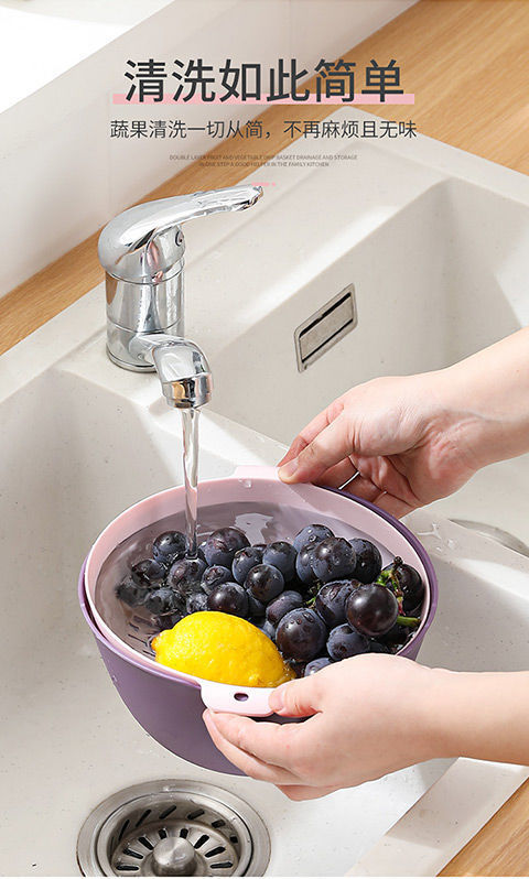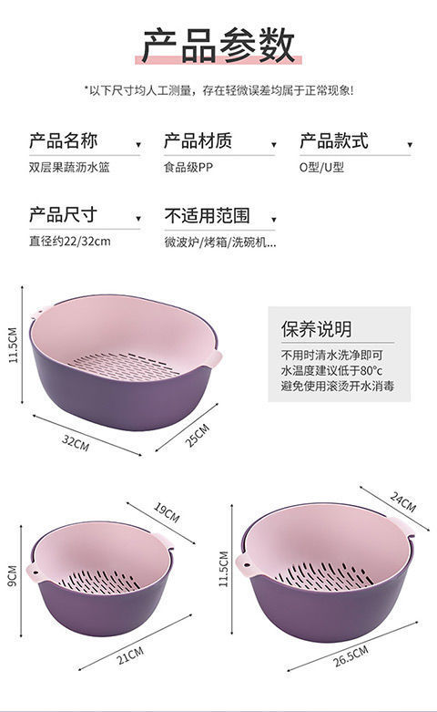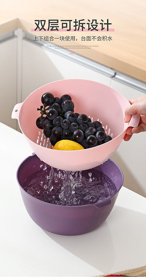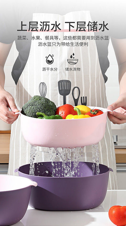 더블 레이어 배수 바구니 가정용 두꺼운 플라스틱 세척 과일 바구니 거실 주방 과일 플레이트 야채 세척 분지 바구니
