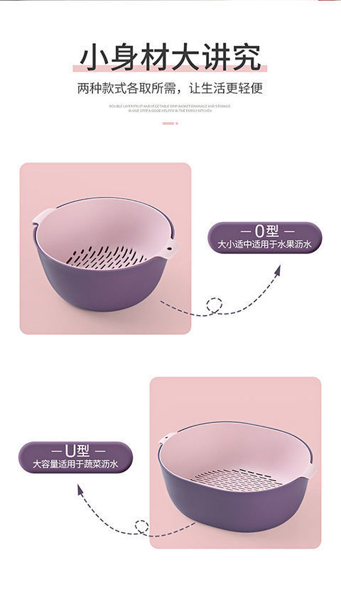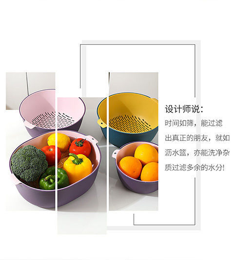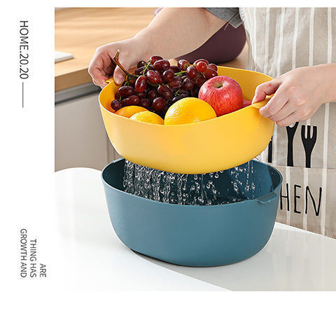 더블 레이어 배수 바구니 가정용 두꺼운 플라스틱 세척 과일 바구니 거실 주방 과일 플레이트 야채 세척 분지 바구니스토어 가기
