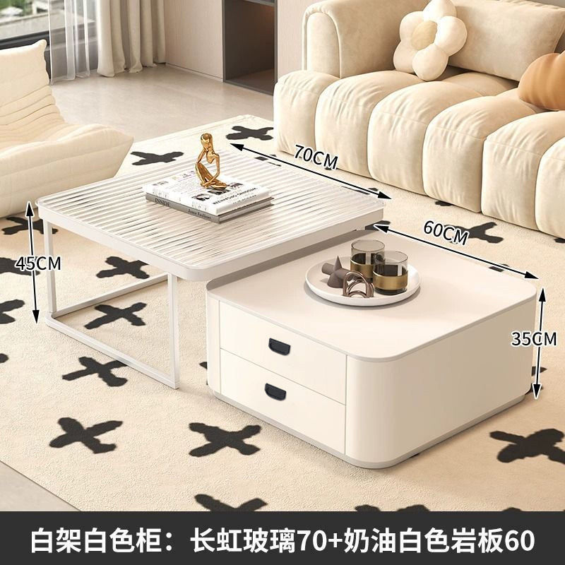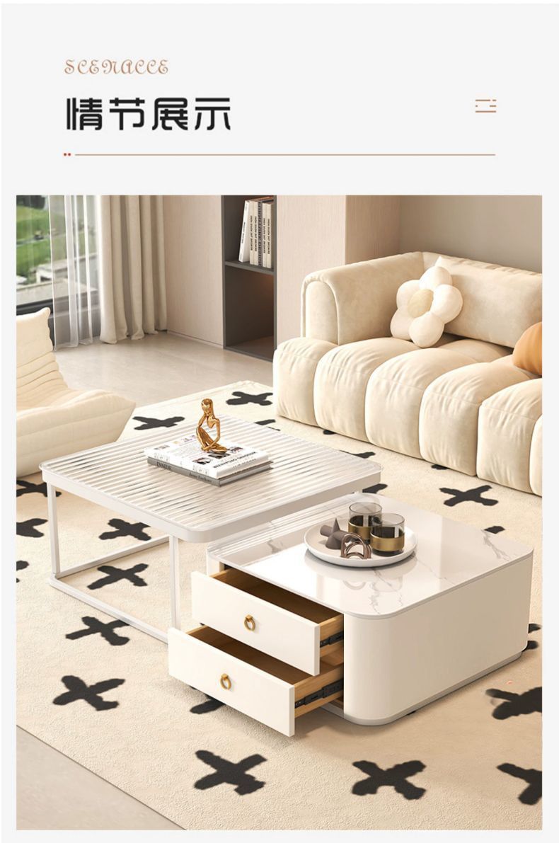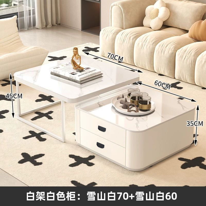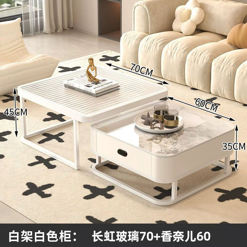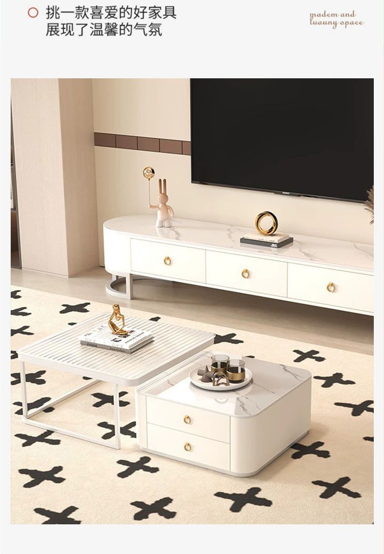 Shengbangrong 2024 새로운 크림 스타일 화이트 슬레이트 커피 테이블 세트, 가벼운 럭셔리, 소형 아파트 거실, 가정용, 심플하고 모던스토어 가기