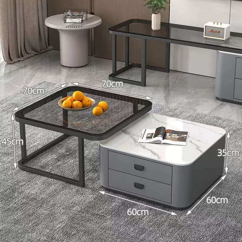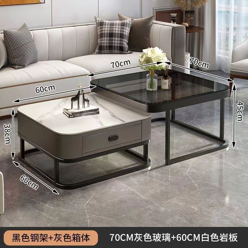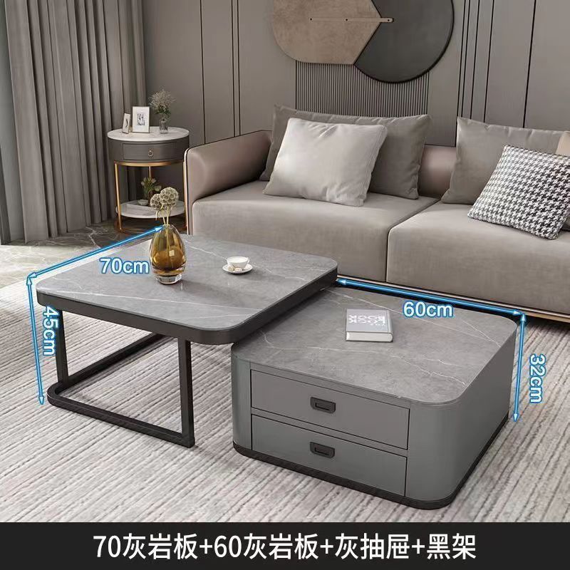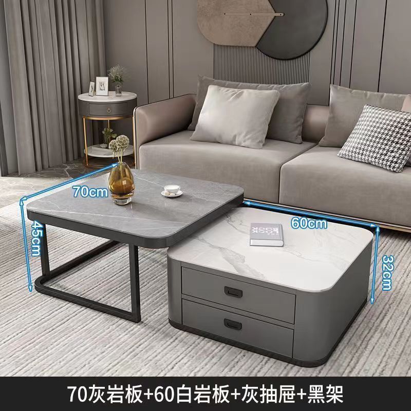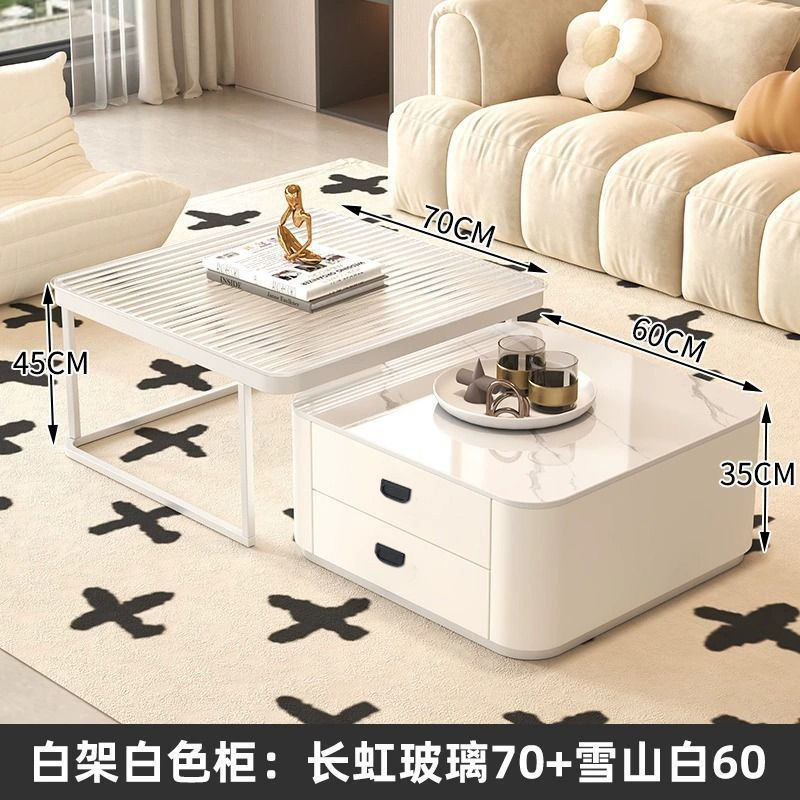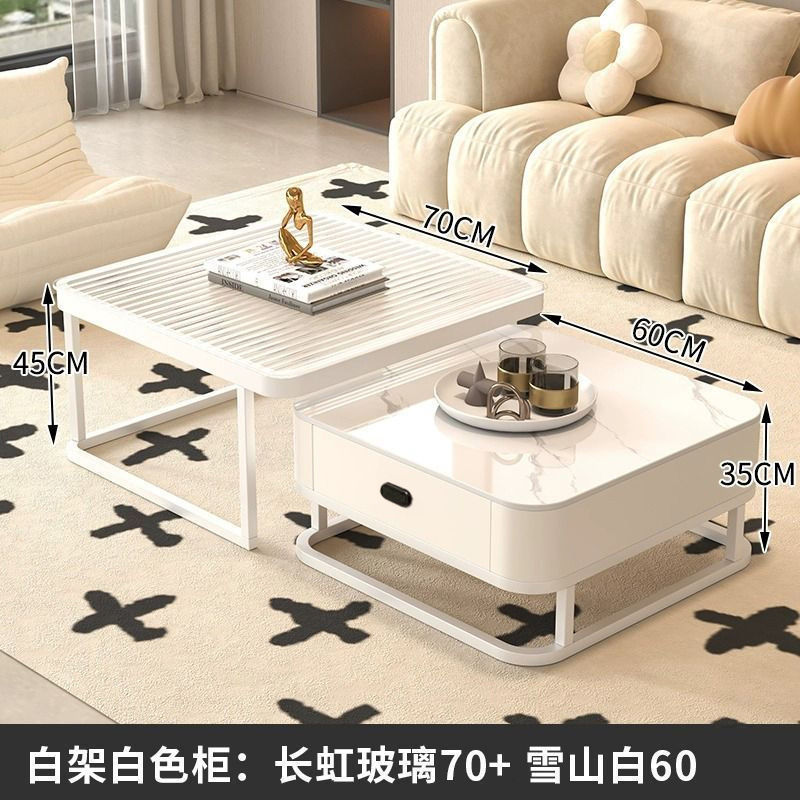 Shengbangrong 2024 새로운 크림 스타일 화이트 슬레이트 커피 테이블 세트, 가벼운 럭셔리, 소형 아파트 거실, 가정용, 심플하고 모던스토어 가기