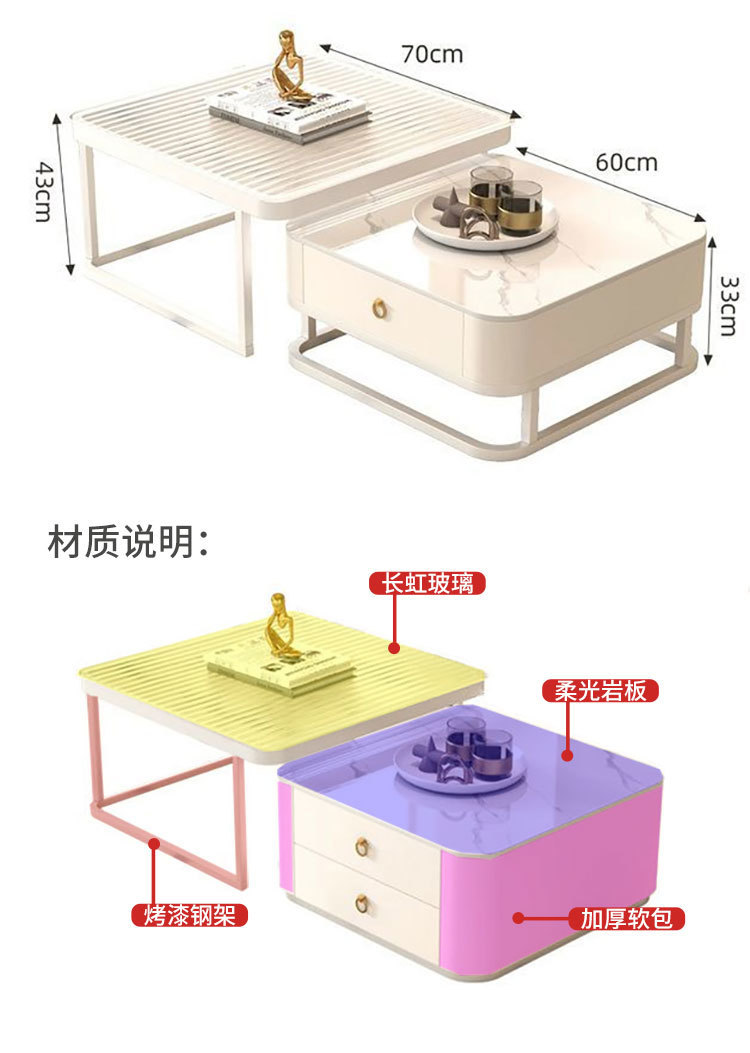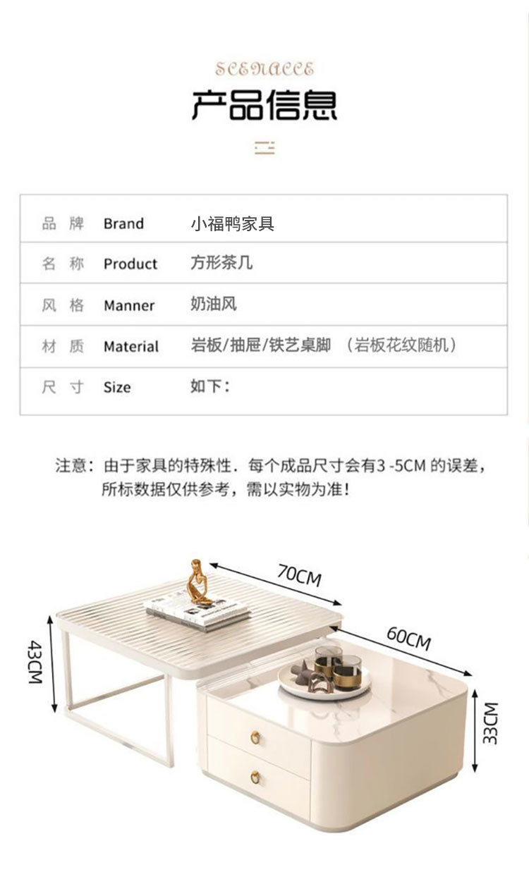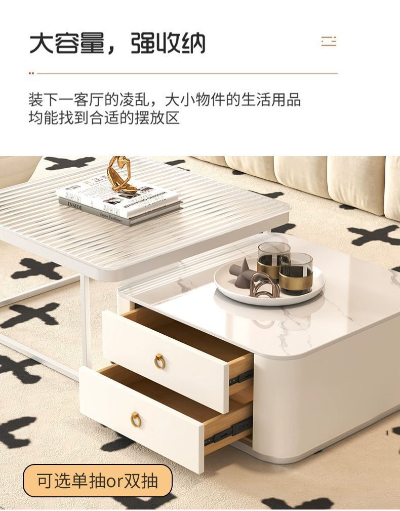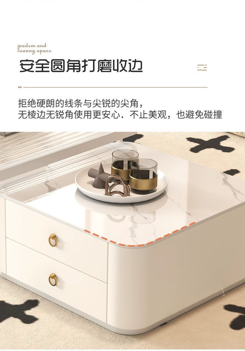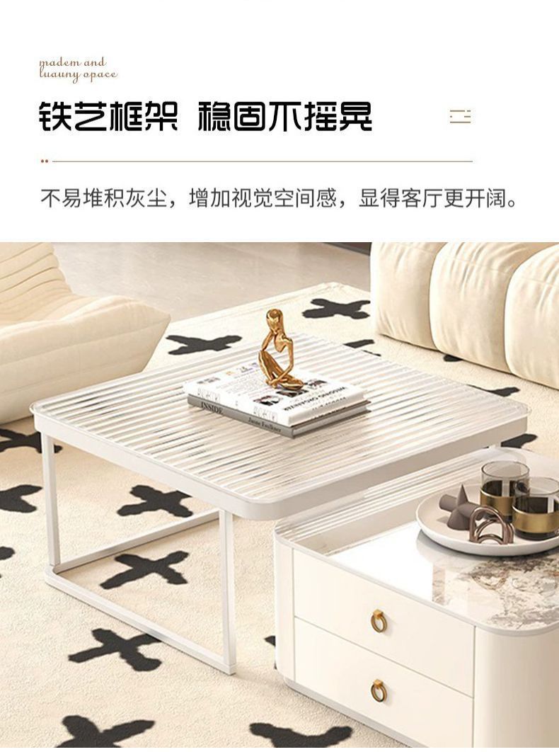 Shengbangrong 2024 새로운 크림 스타일 화이트 슬레이트 커피 테이블 세트, 가벼운 럭셔리, 소형 아파트 거실, 가정용, 심플하고 모던
