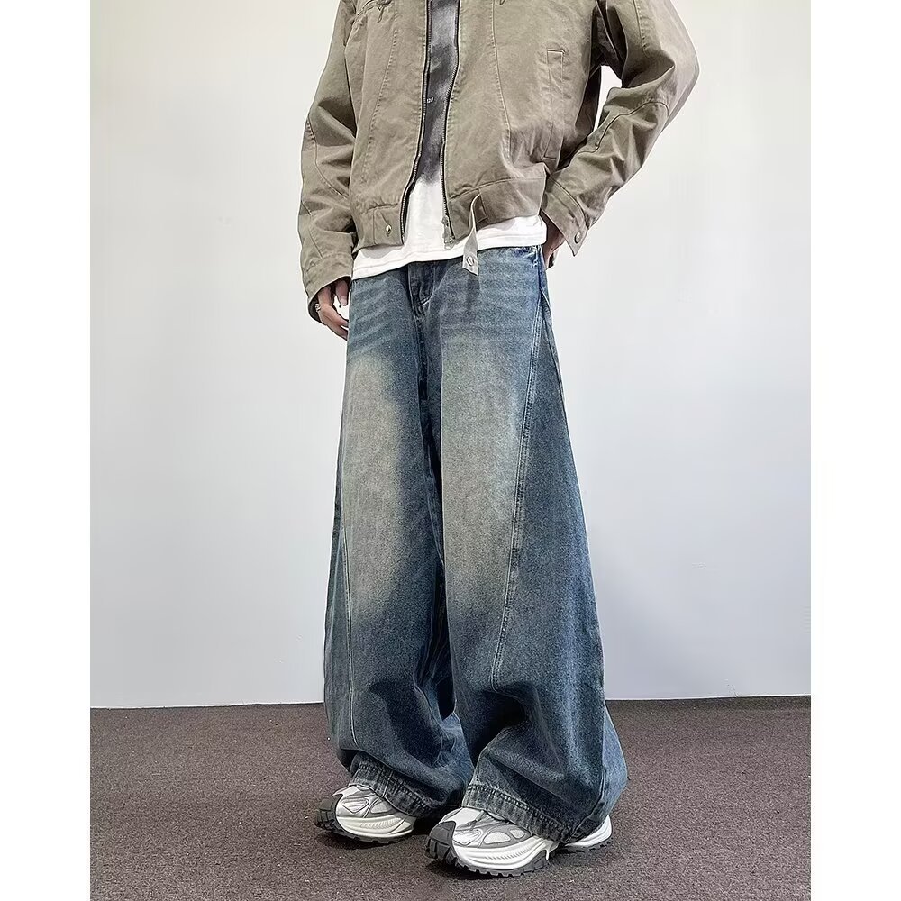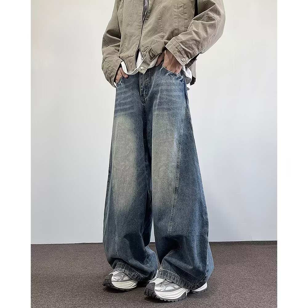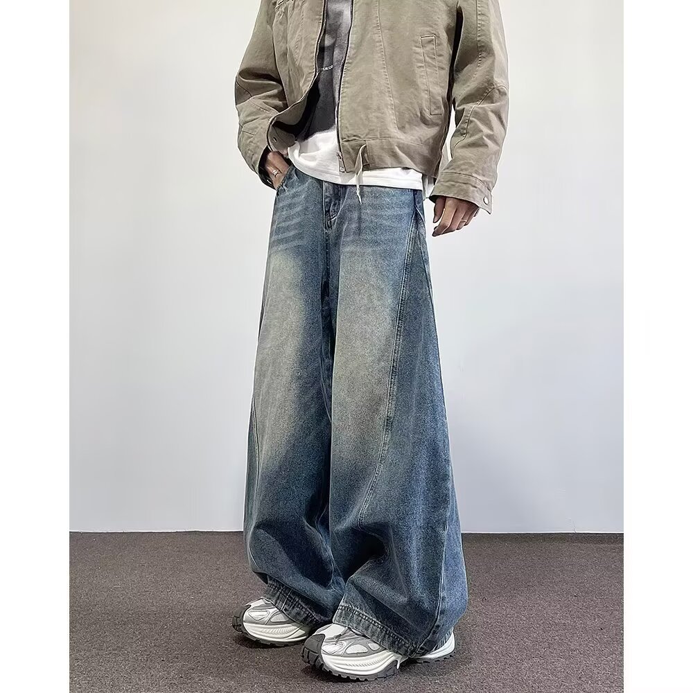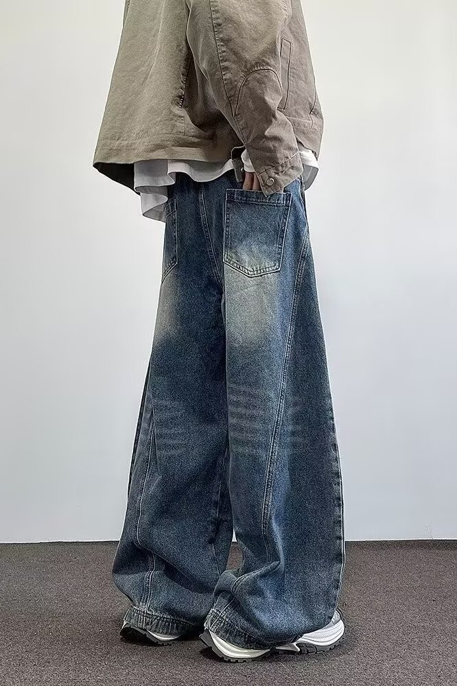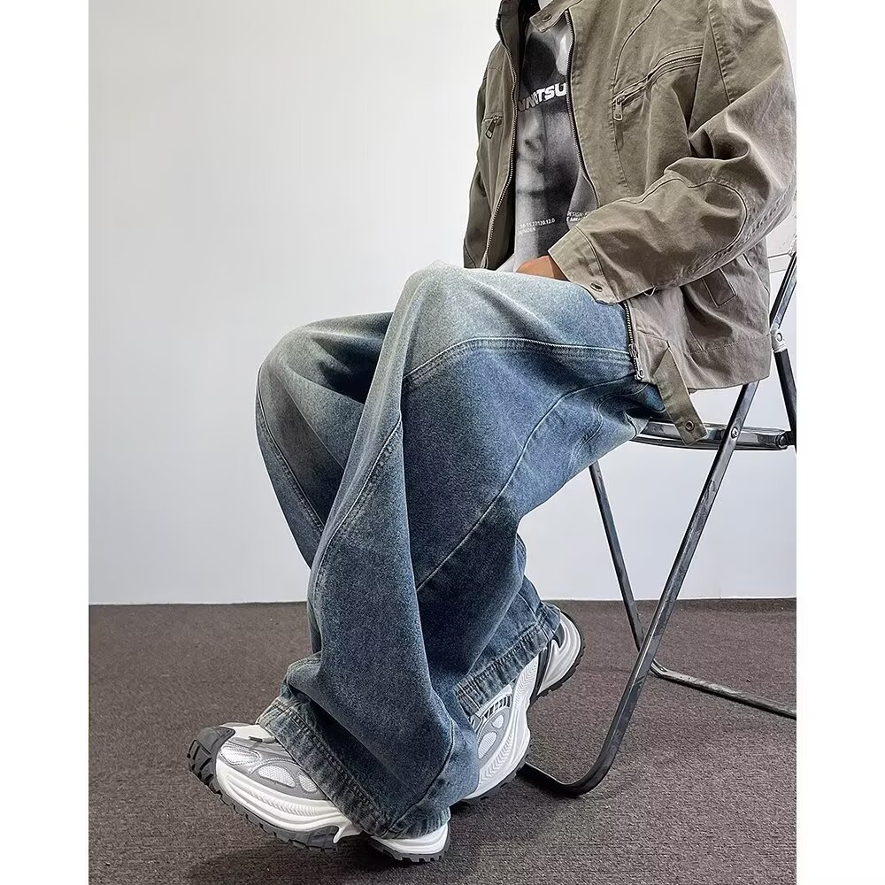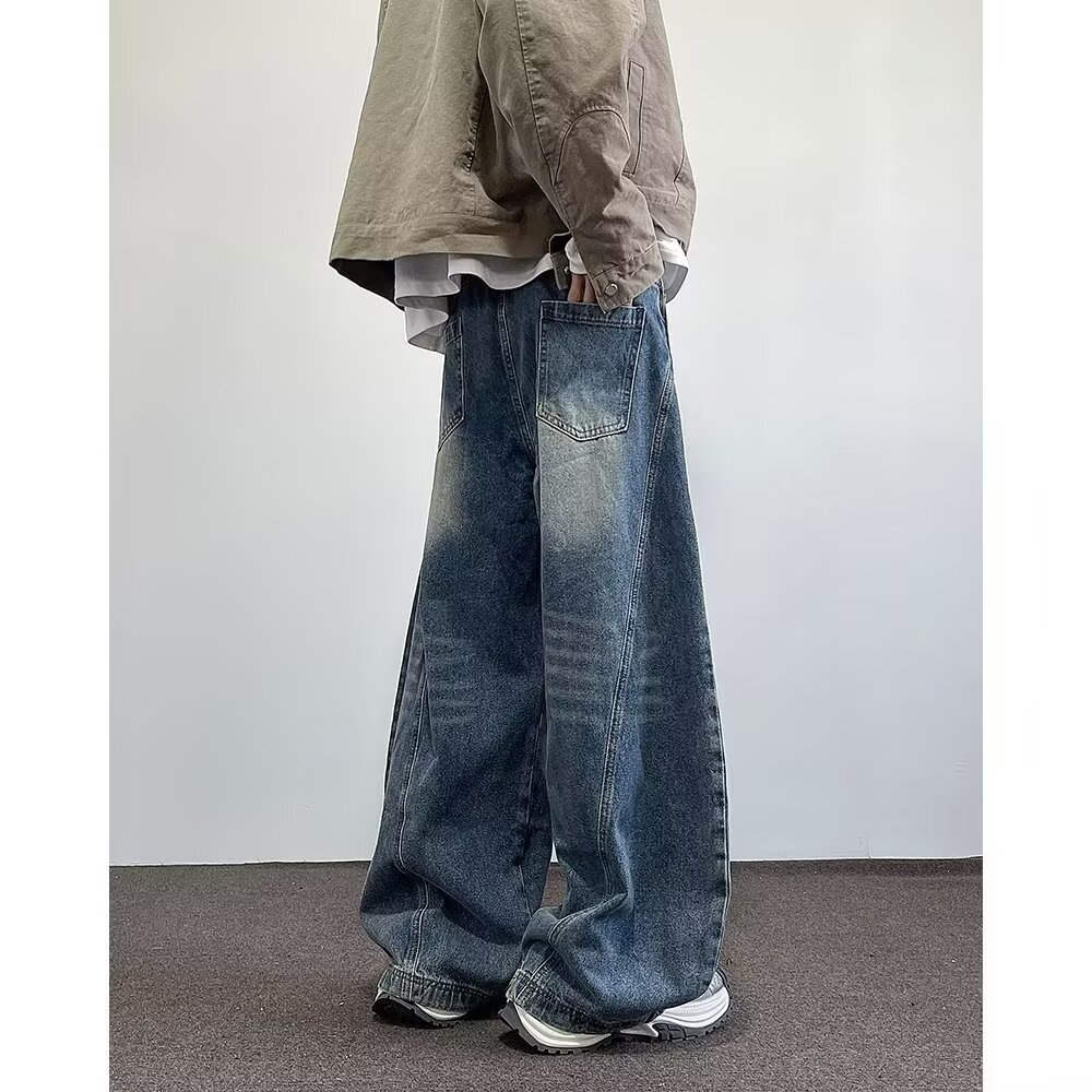 봄과 여름 응집체 스크래치 스트레이트 청바지 남성용 중립 걸레 바지스토어 가기
