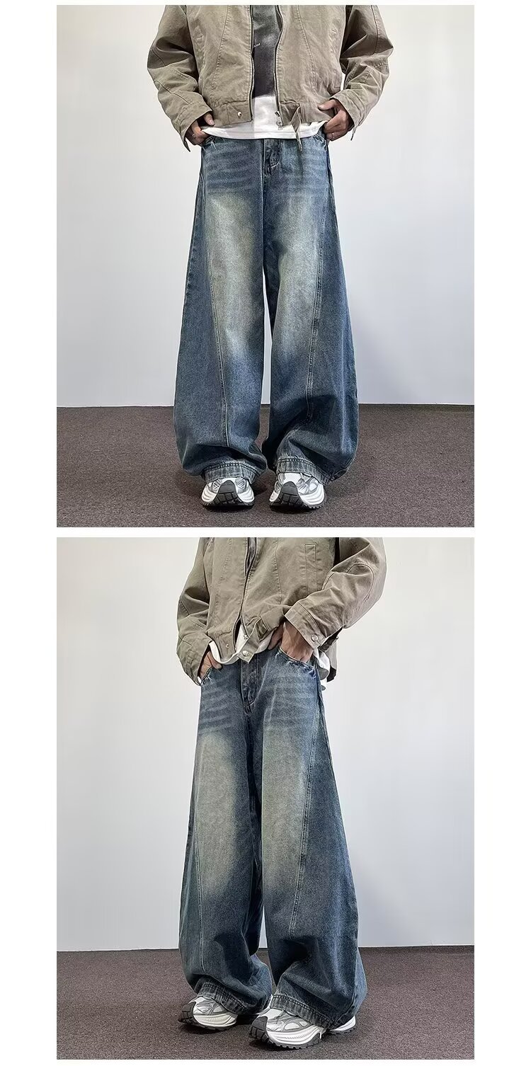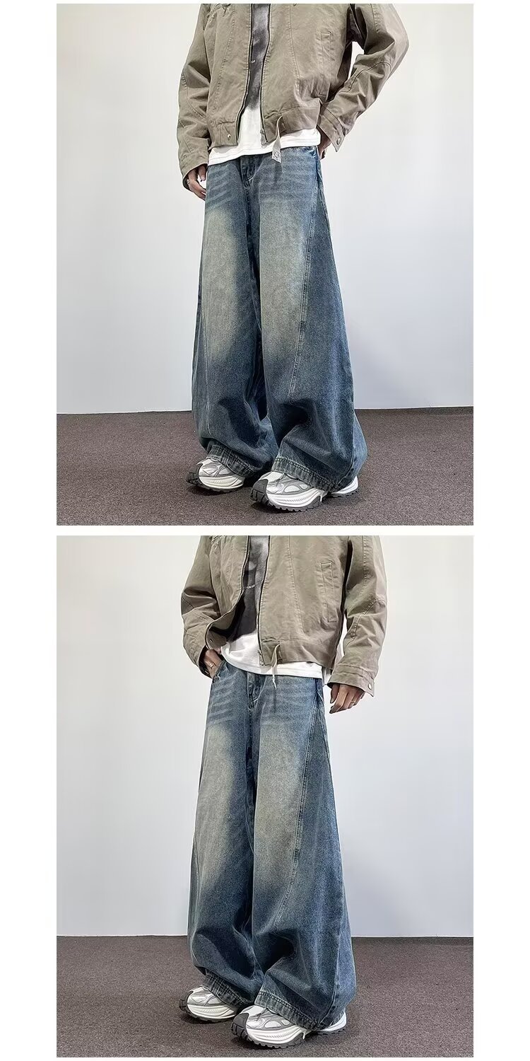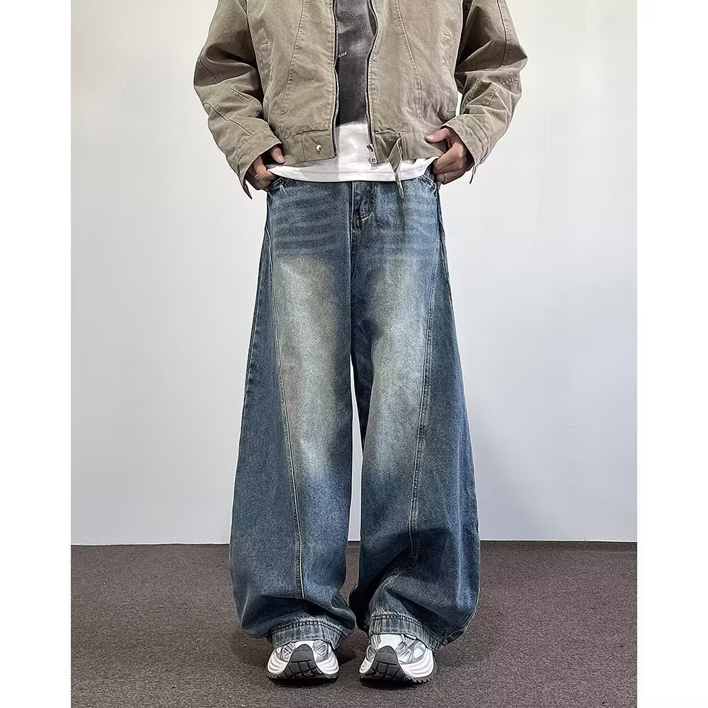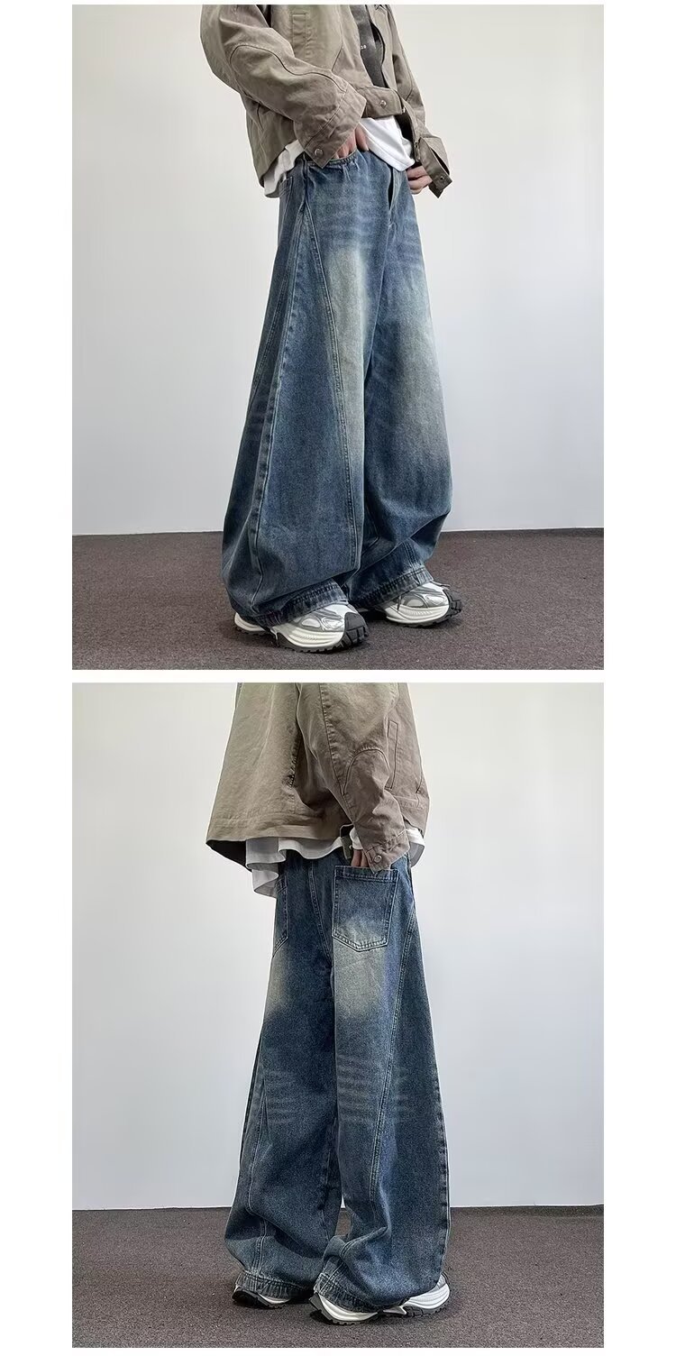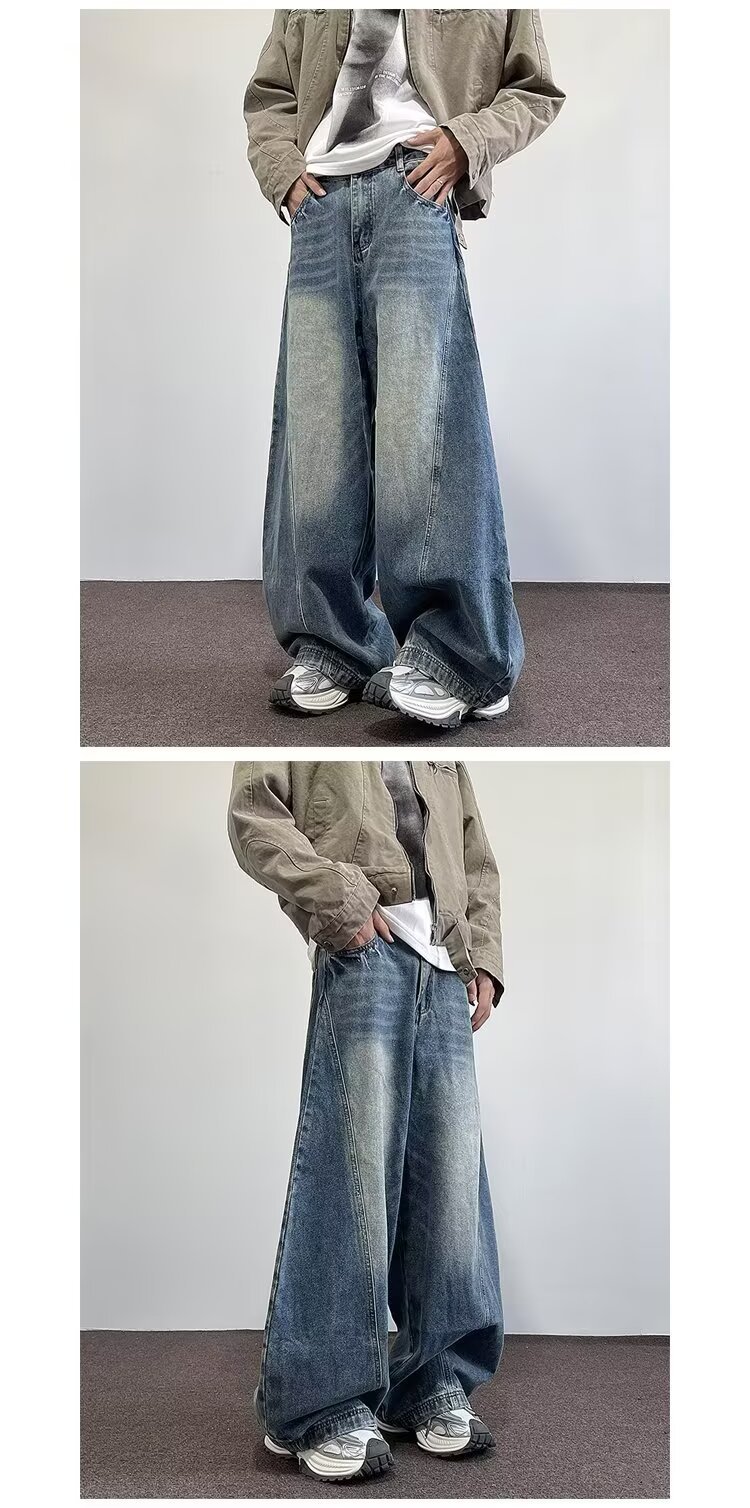 봄과 여름 응집체 스크래치 스트레이트 청바지 남성용 중립 걸레 바지스토어 가기