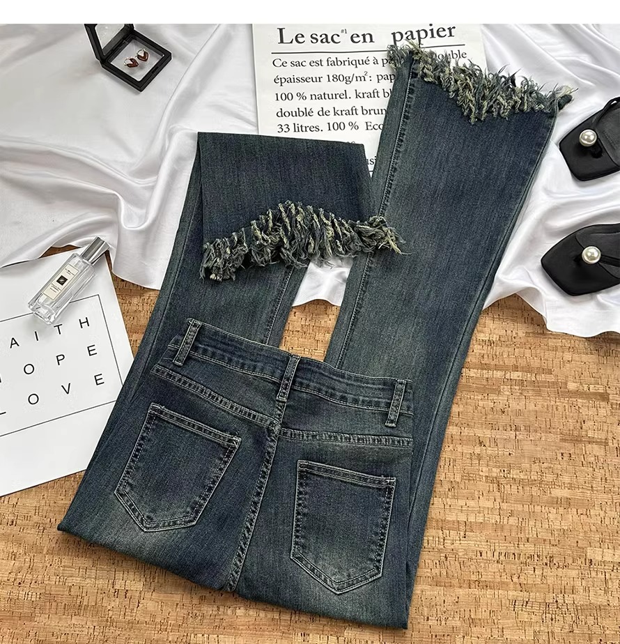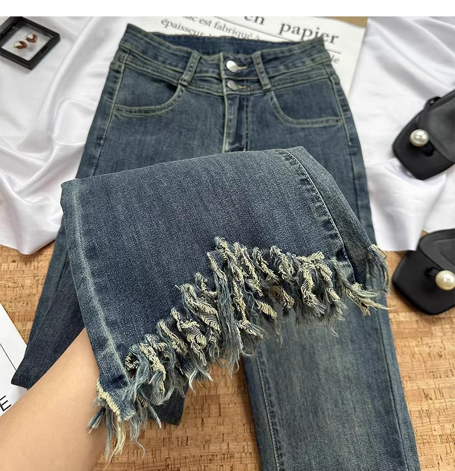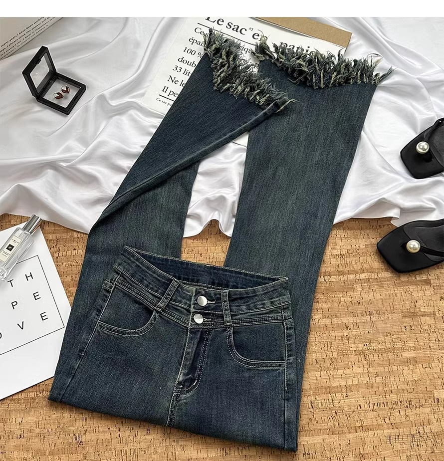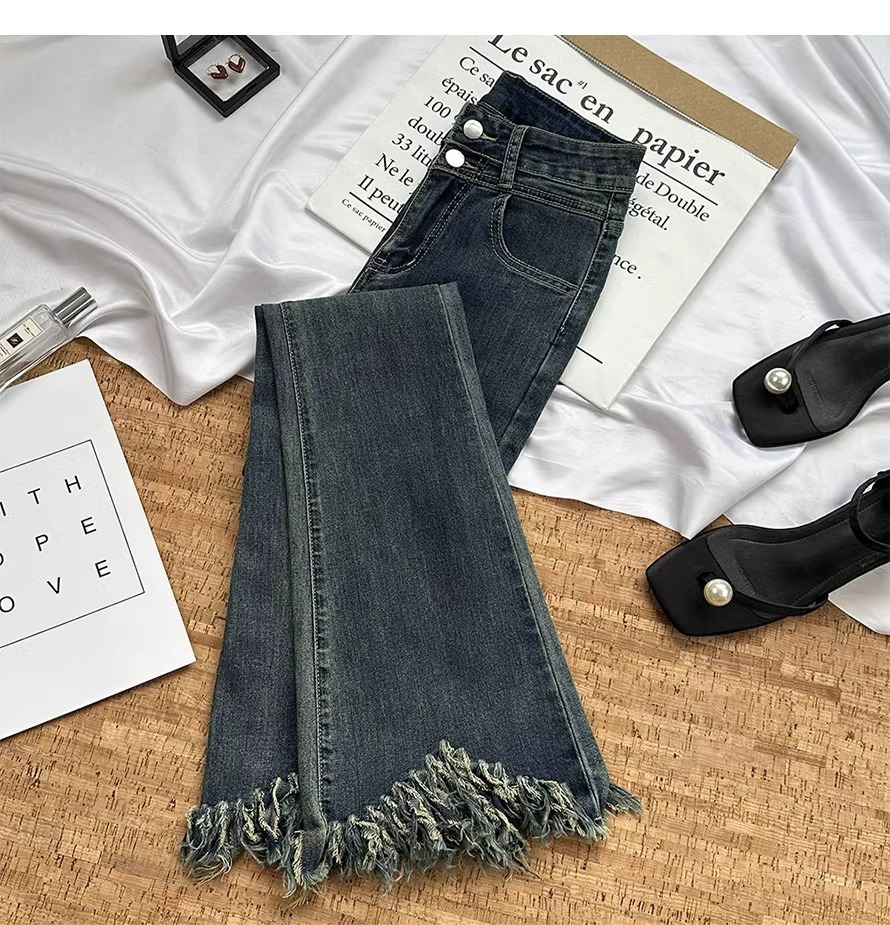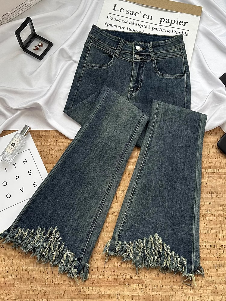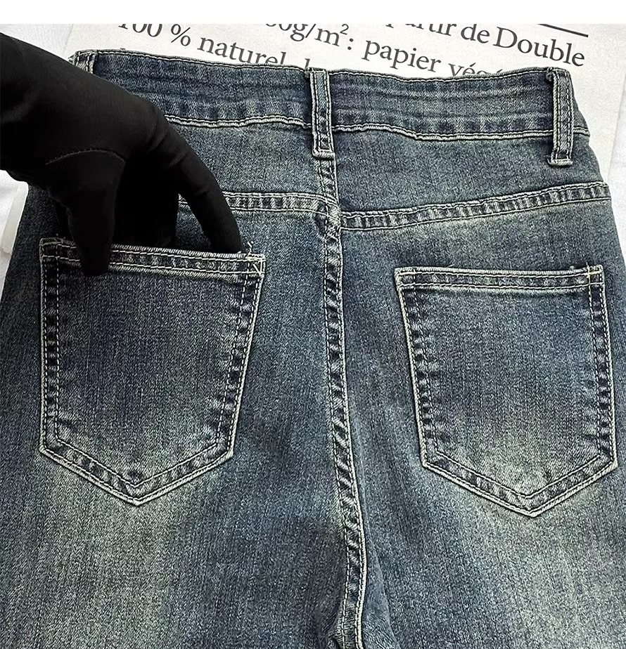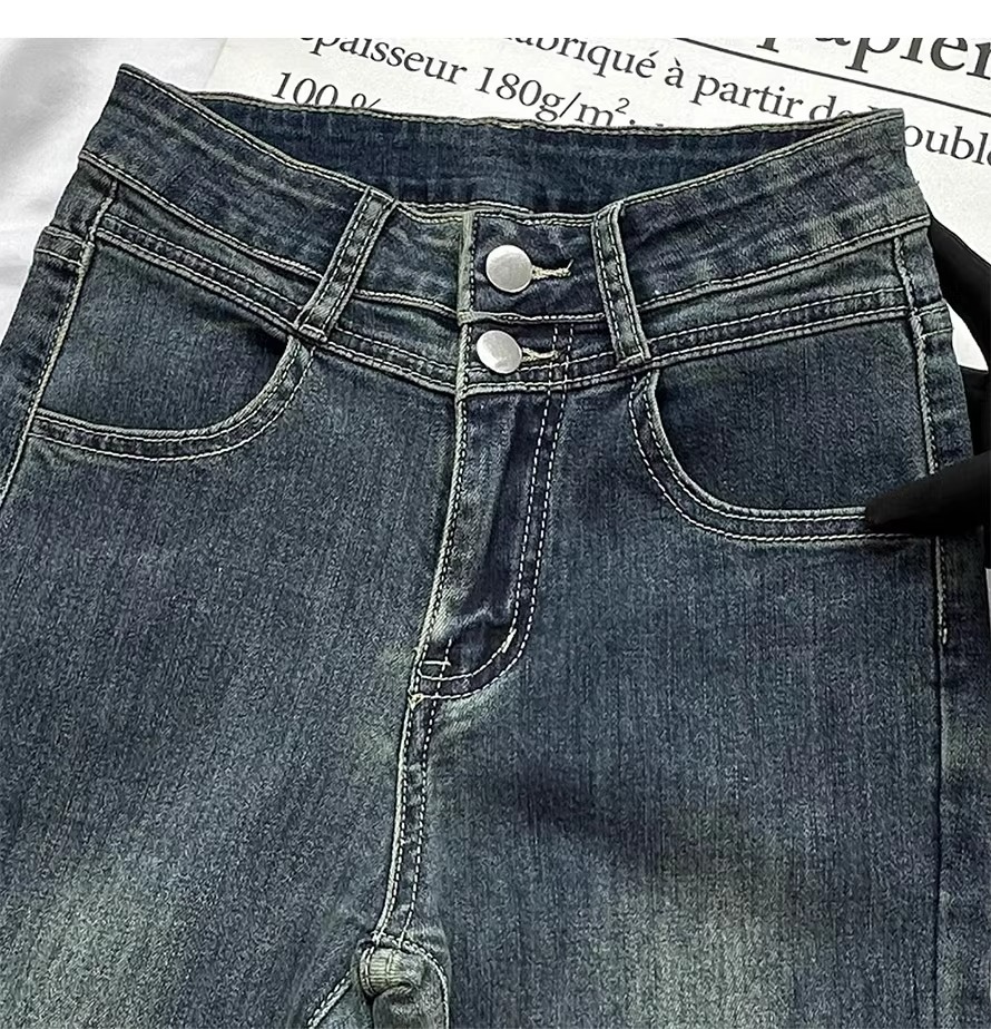 빈티지 블루 틈새 디자인 센스 술 Weirar 청바지 여성의 2025 높은 허리 슬리밍 바지스토어 가기