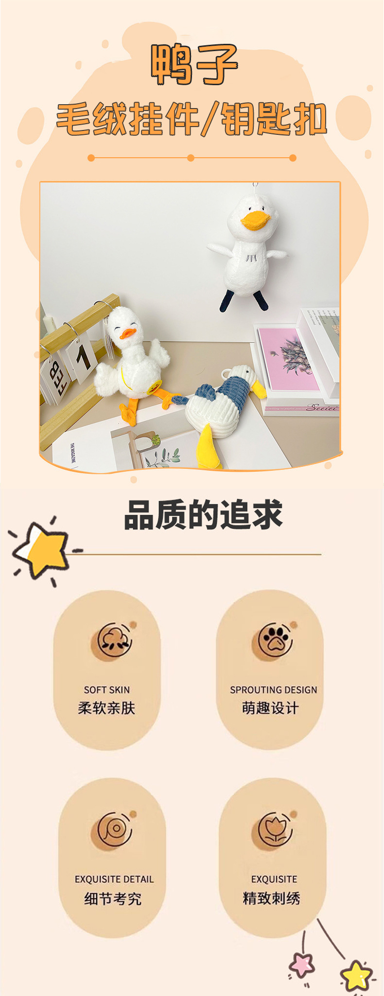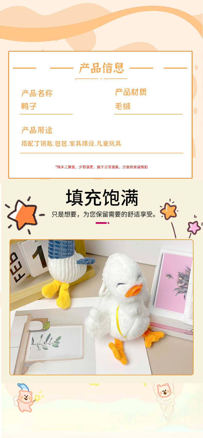만화 급유 오리 펜던트 카드 사랑 인형 학교 가방 키 체인 펜던트 학생 플러시 장난감 인형