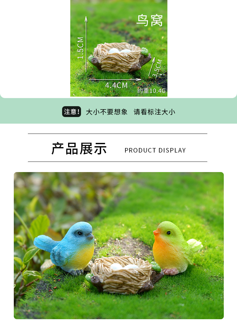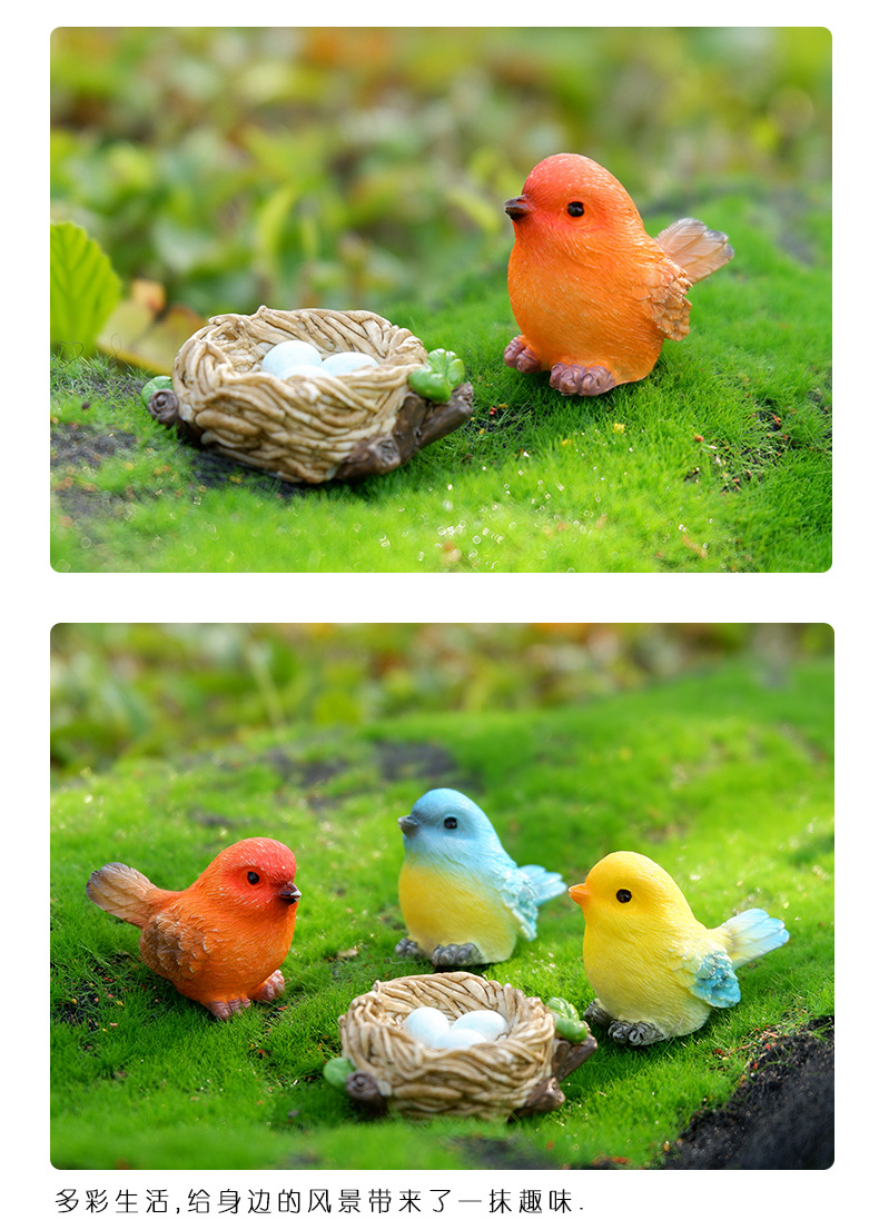 작은 새 마이크로 조경 장식품, 수지 공예품, 국경을 넘는 새 둥지, 귀여운 만화 원예 식물, 동물 분재 장식스토어 가기