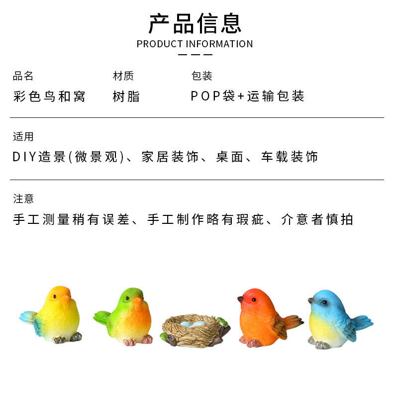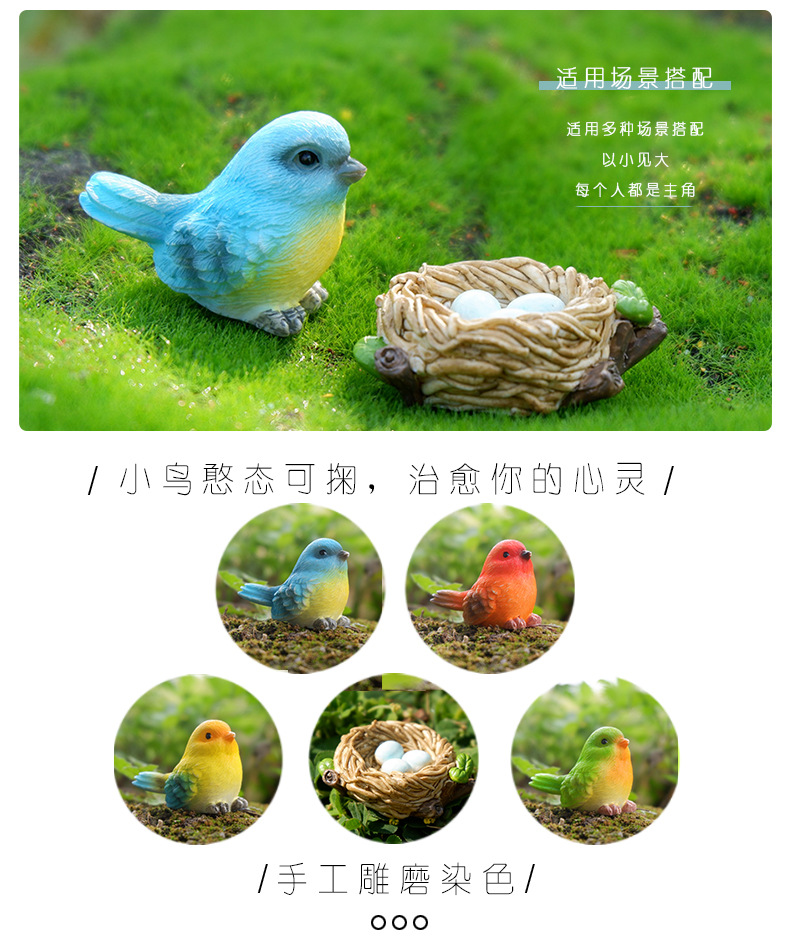 작은 새 마이크로 조경 장식품, 수지 공예품, 국경을 넘는 새 둥지, 귀여운 만화 원예 식물, 동물 분재 장식