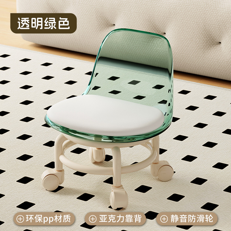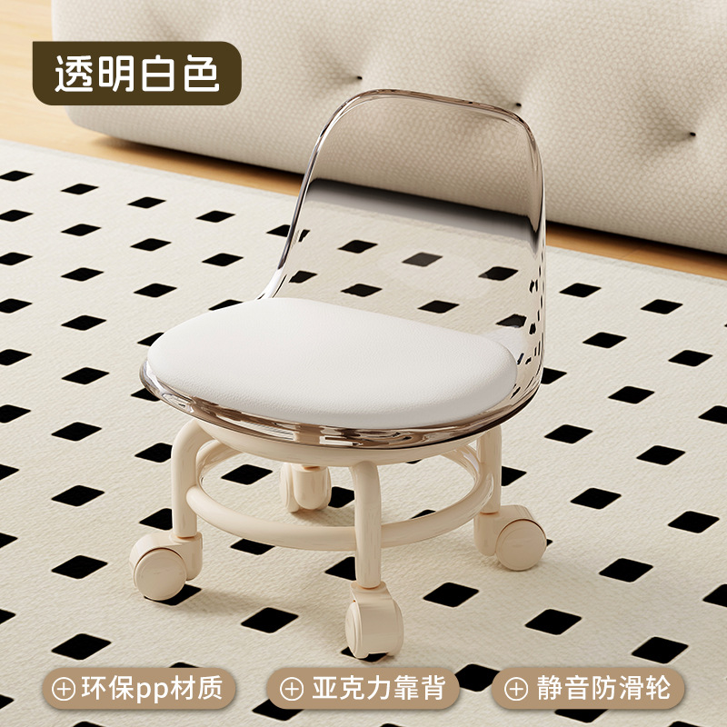거실 투명 슬라이딩 벤치 유니버설 휠 작은 의자 성인 가구 풀리 낮은 의자 조용한 어린이 의자