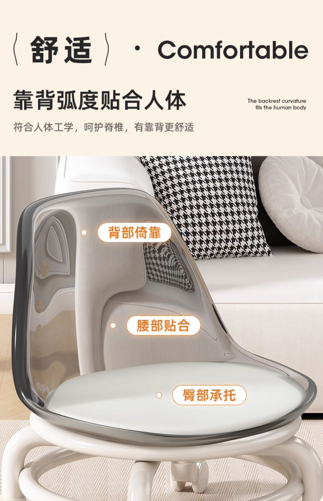 • 투명한 흰색-[친환경 PP 소재-아크릴 등받이]-저소음 미끄럼 방지 바퀴