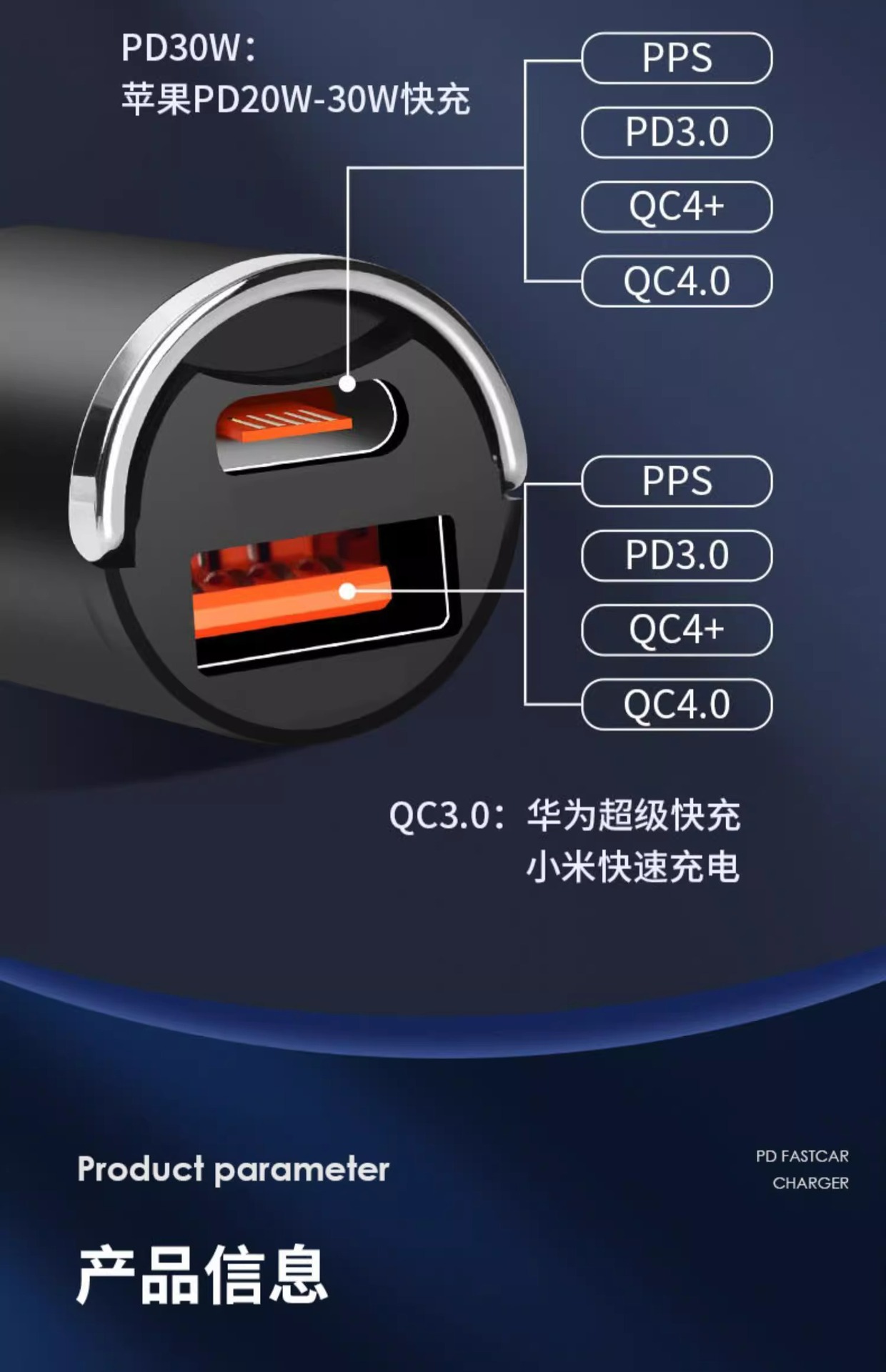 • 합금 투명 차량용 충전기 [Apple/Android 충전 가능]