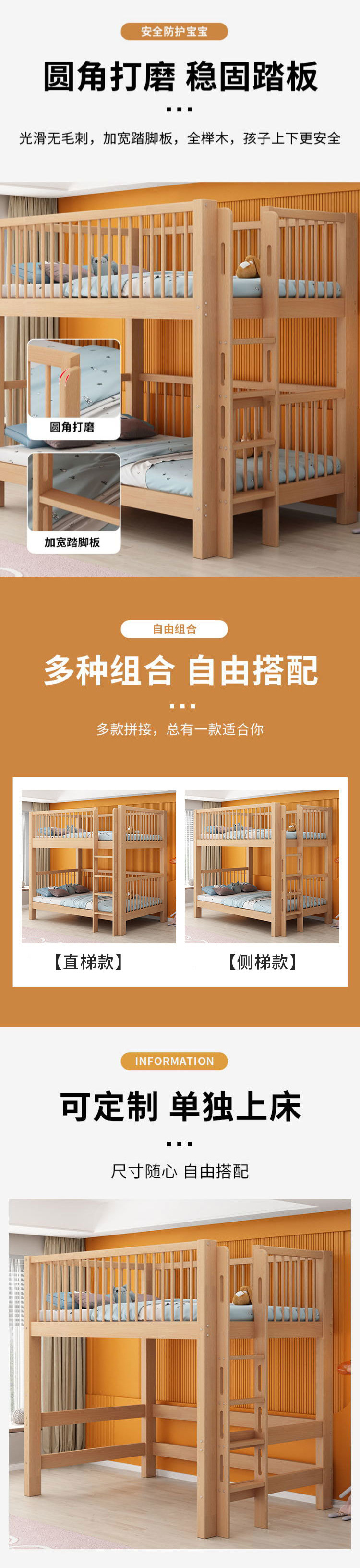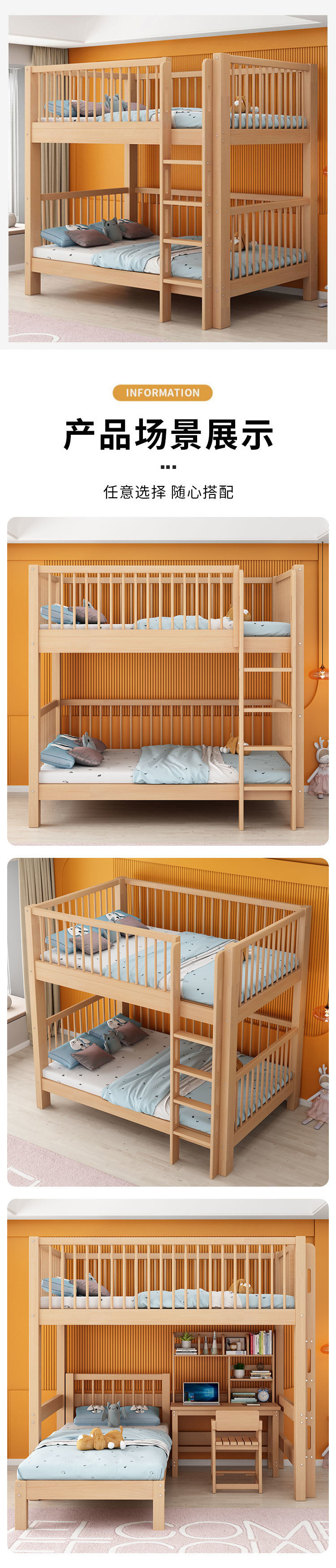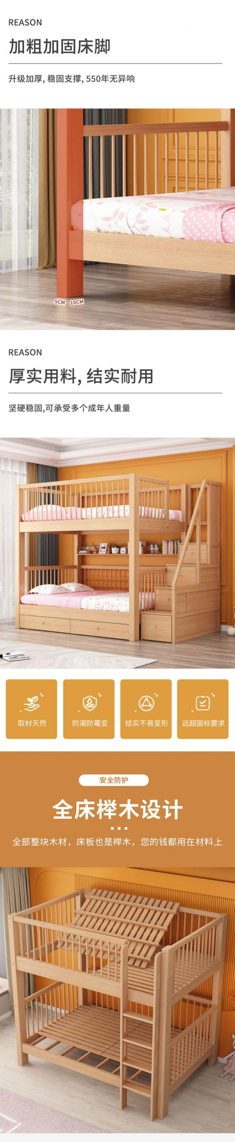 단단한 나무 침대 아이들의 높은 침대 너도밤 2 층 어머니-아이 침대 더블 레이어 같은 폭 통합 침대 다기능 침대스토어 가기