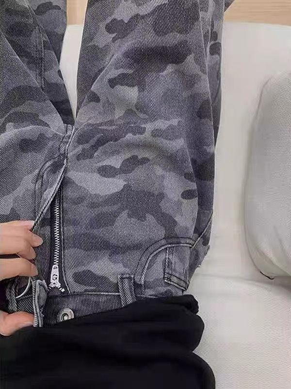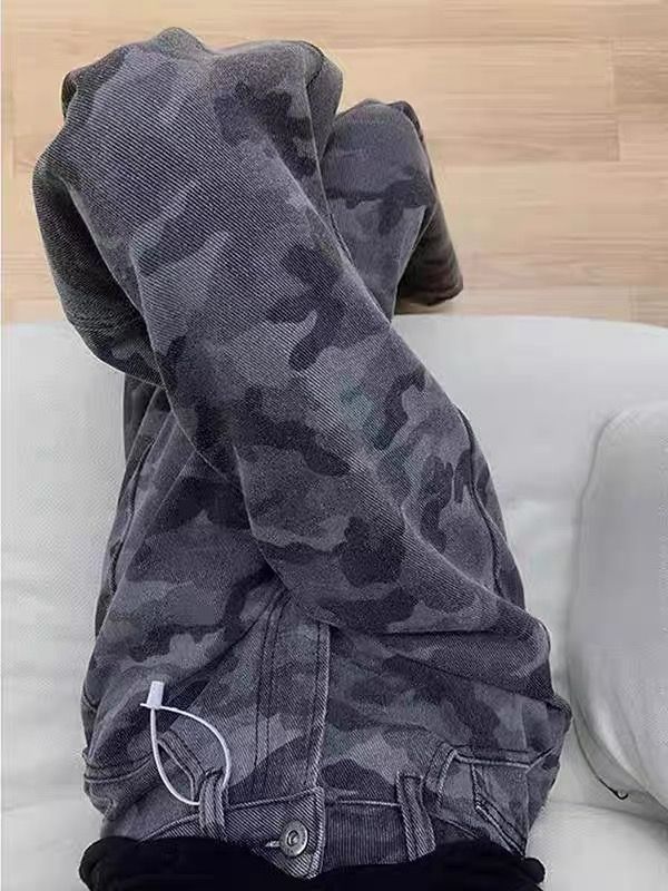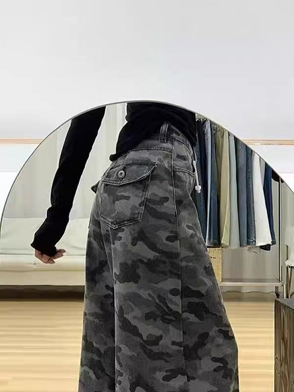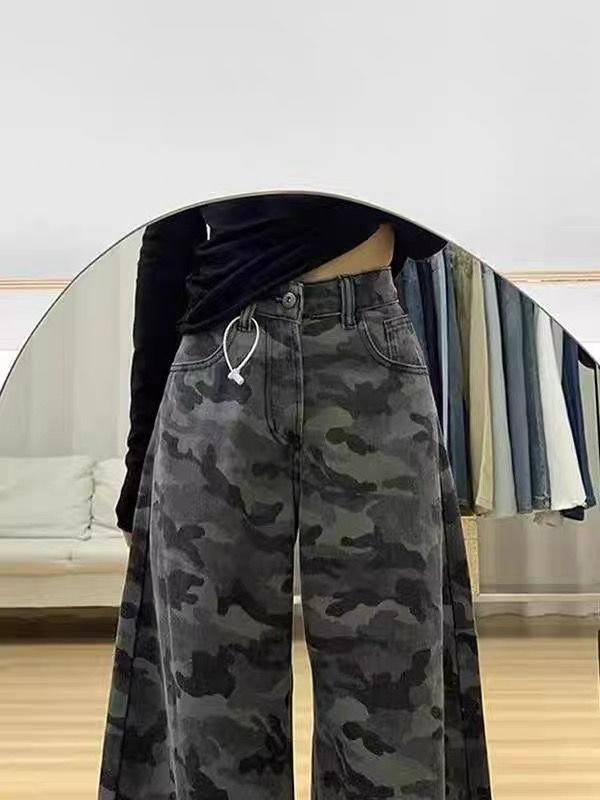 아메리칸 스타일 하이 스트리트 툴링 와이드 레그 위장 청바지 여성의 2025 봄 레트로 높은 허리 느슨한 슬림 룩 바지스토어 가기