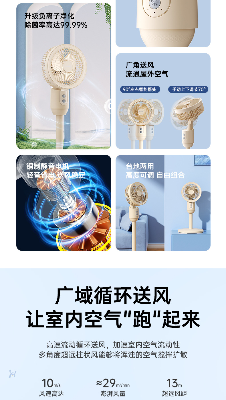 전기 팬 순환 홈 오피스 기숙사 학생 작은 빛 소리 착륙 바람 좌우로 흔들리는 헤드 선풍기
