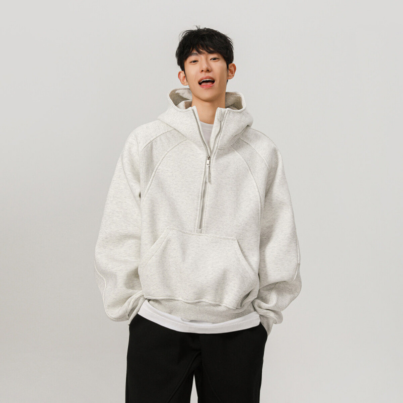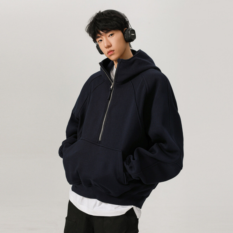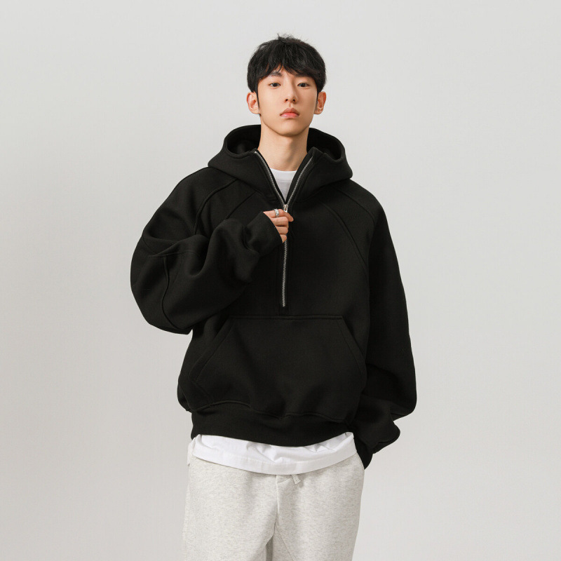 헤비 아메리칸 스타일 하이 스트리트 후드 스웨터 남자 2025 뉴 봄 루즈 패셔너블 짧은 하프 지프 후디 재킷스토어 가기