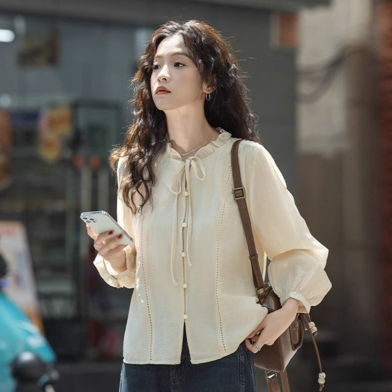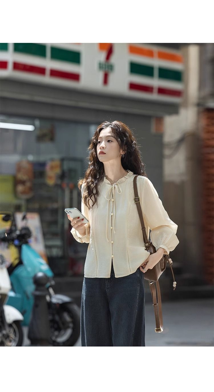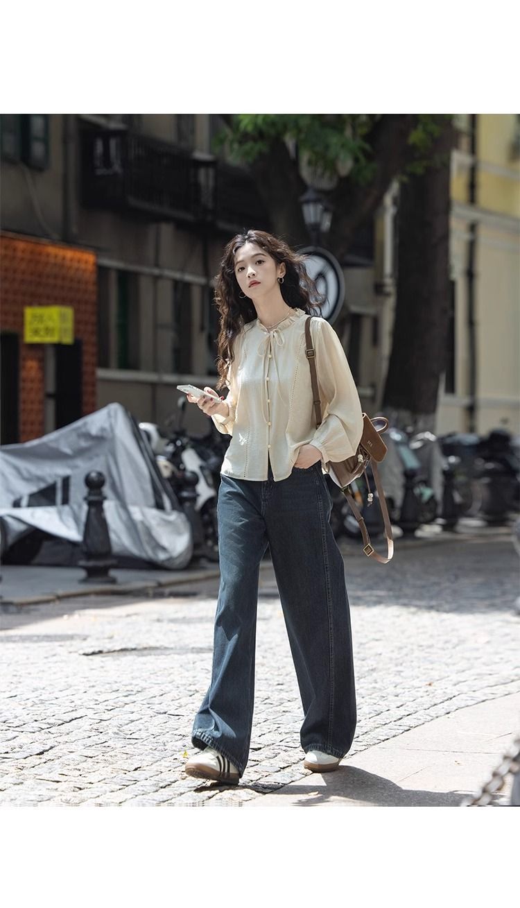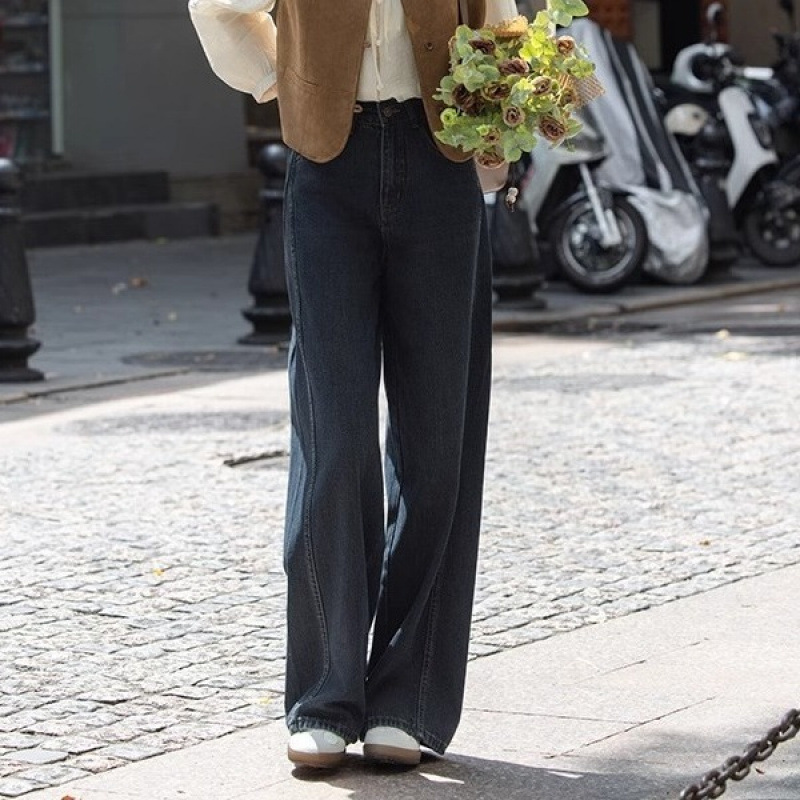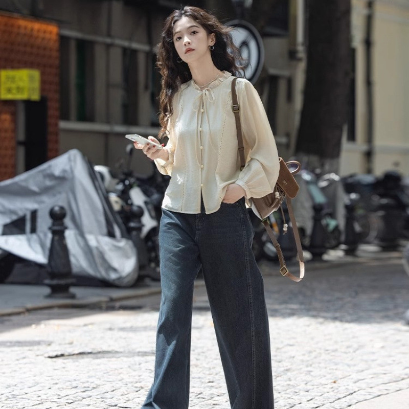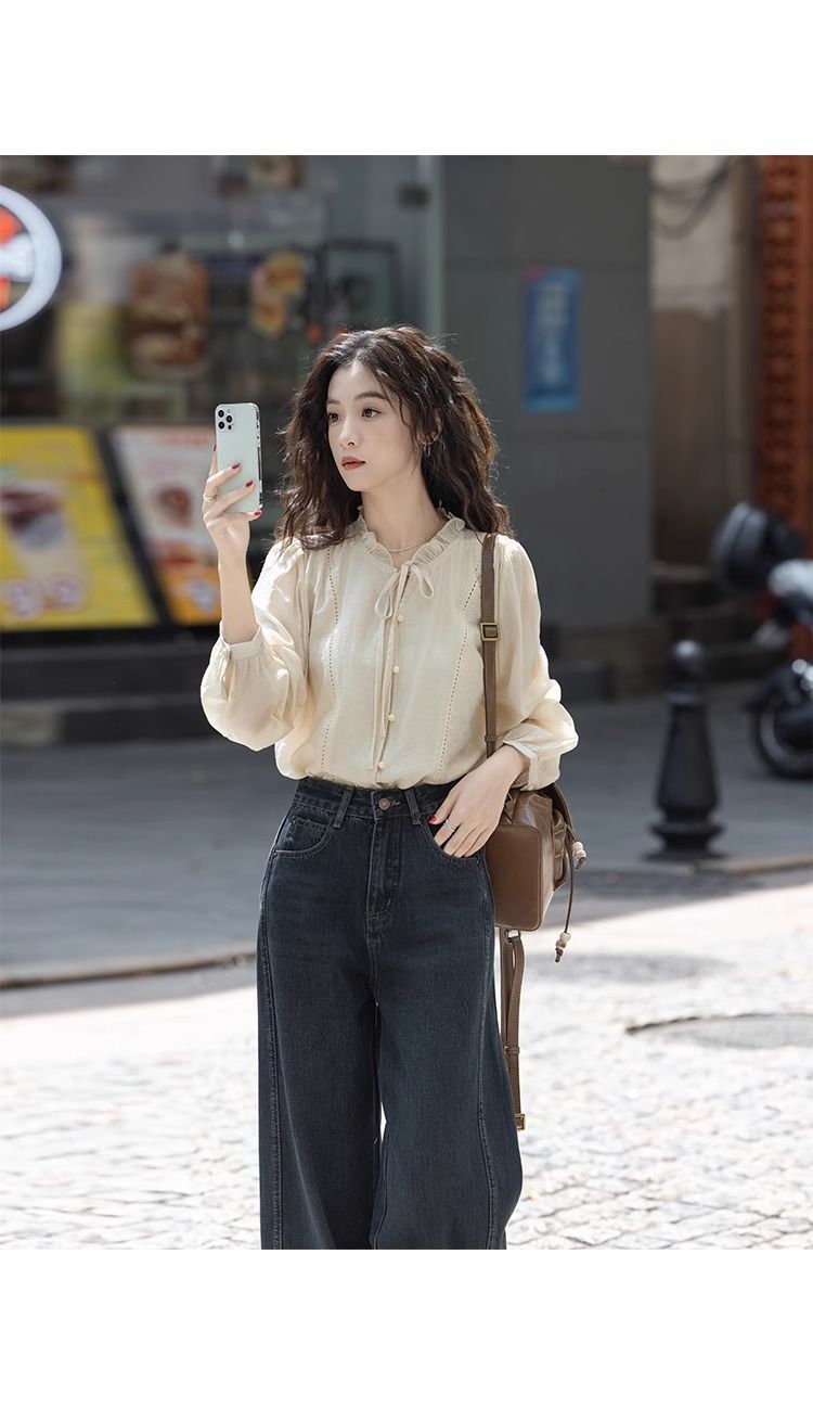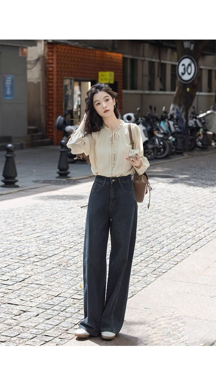 2025 봄 새 한국 스타일 하이 엔드 시폰 셔츠 탑 다크 브라운 조끼 청바지 슬림 3 종 세트스토어 가기