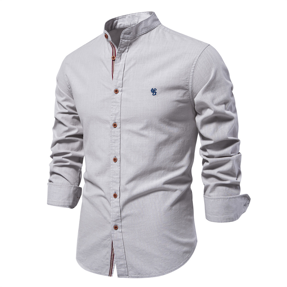 봄과 여름 새로운 패션 비즈니스 셔츠 남성면 및 린넨 캐주얼 일본 패션 단색 긴 소매 셔츠 남자의 아름다운 크기