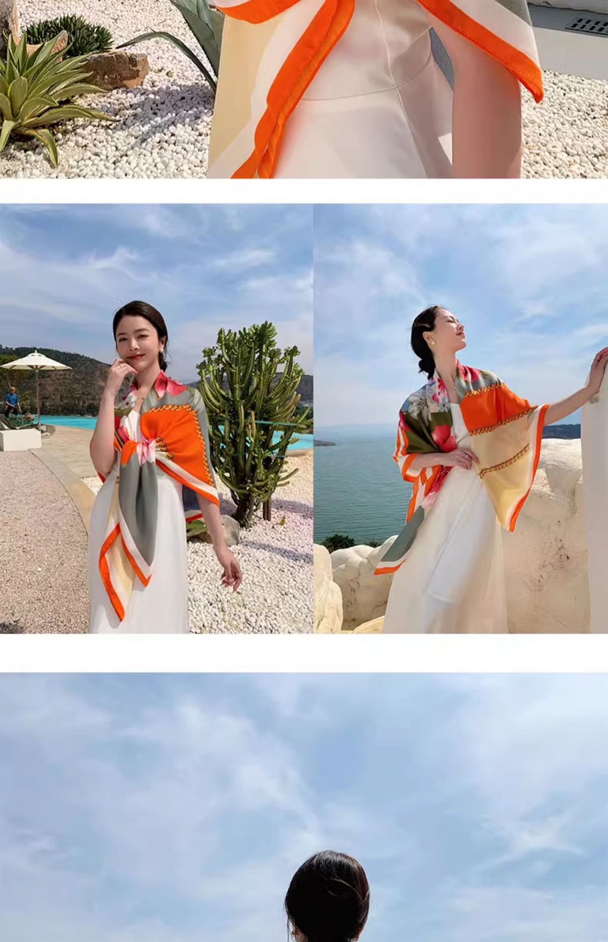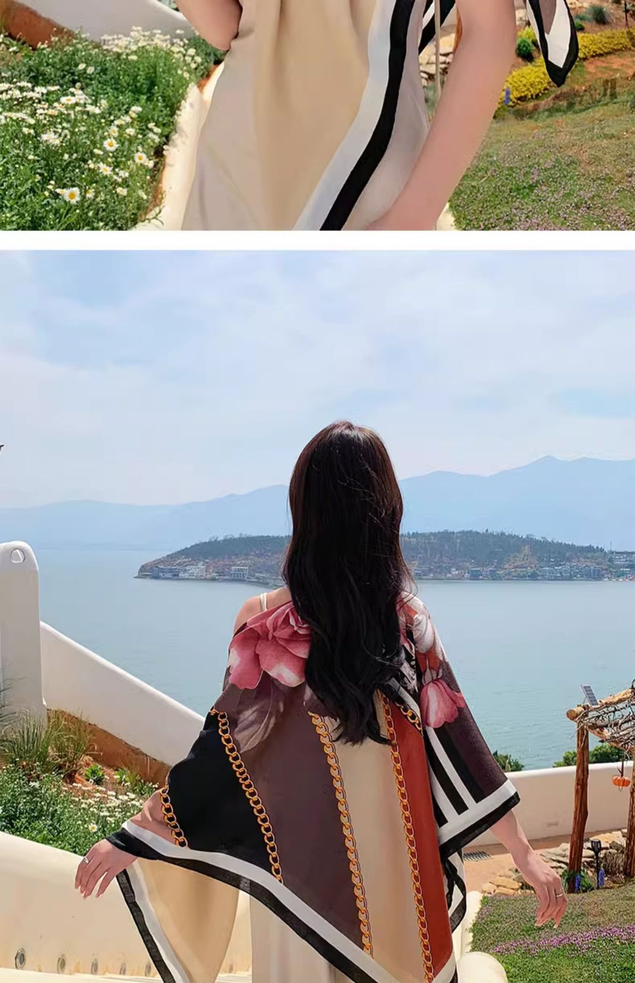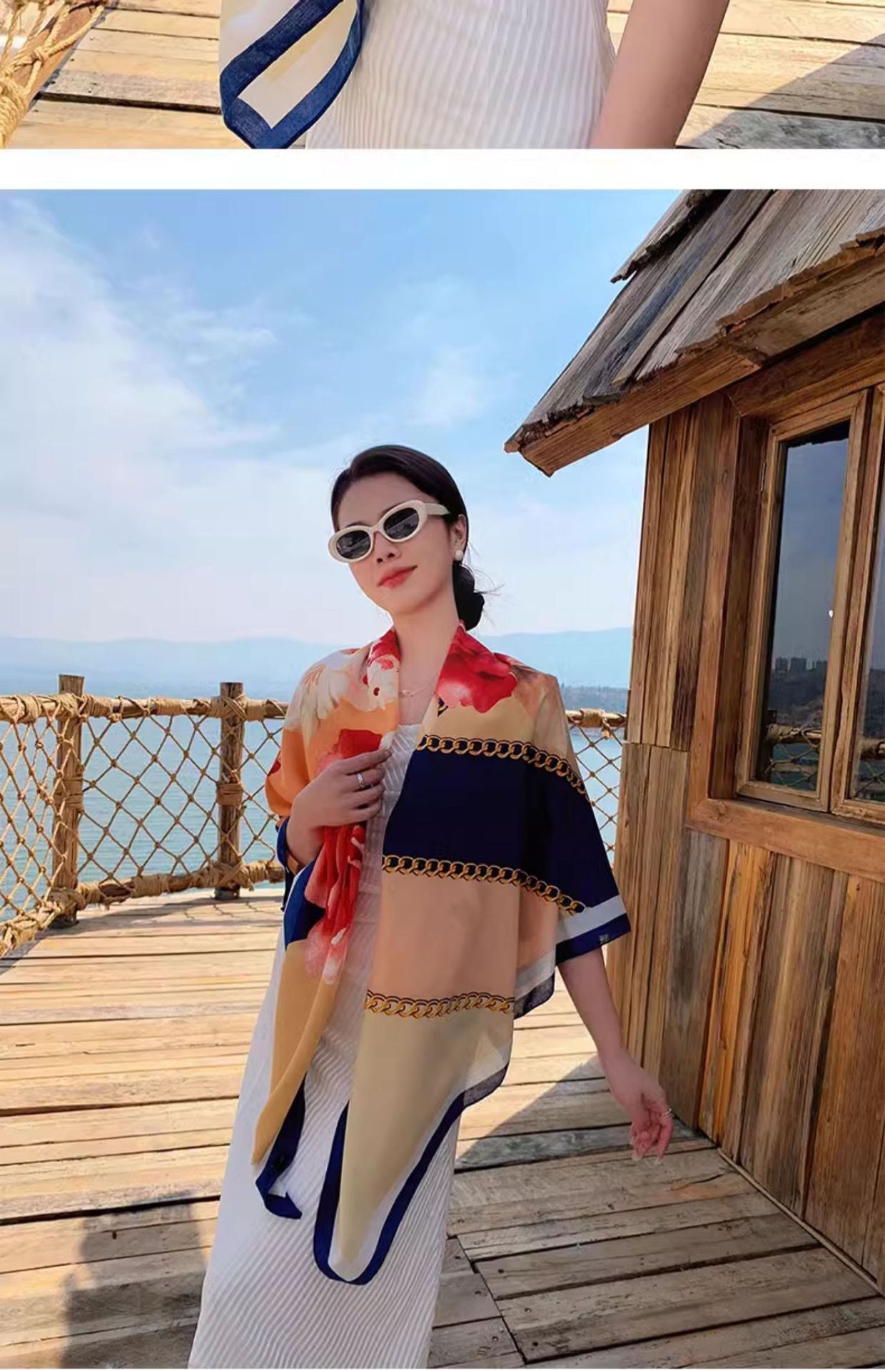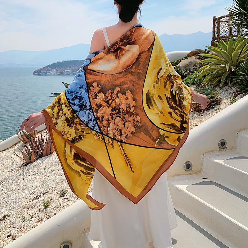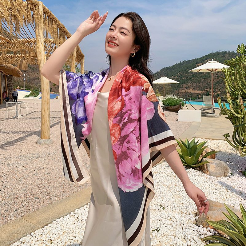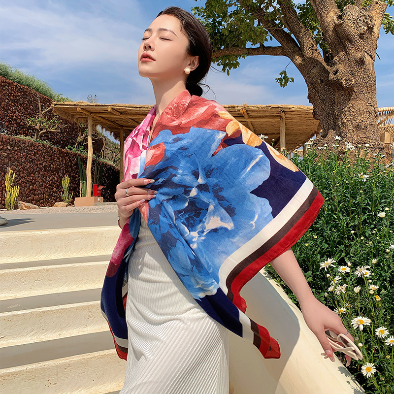 휴가 여행 실크 스카프 _ 질감 벨벳 느낌 130_130cm 큰 사각형 스카프 꽃 선 스크린 스카프 목도리 여성